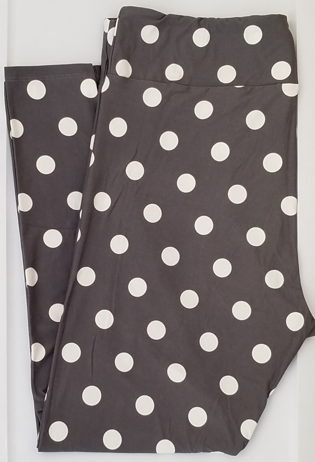 TC LuLaRoe Tall Curvy Leggings White Polka Dots on Gray NWT U53