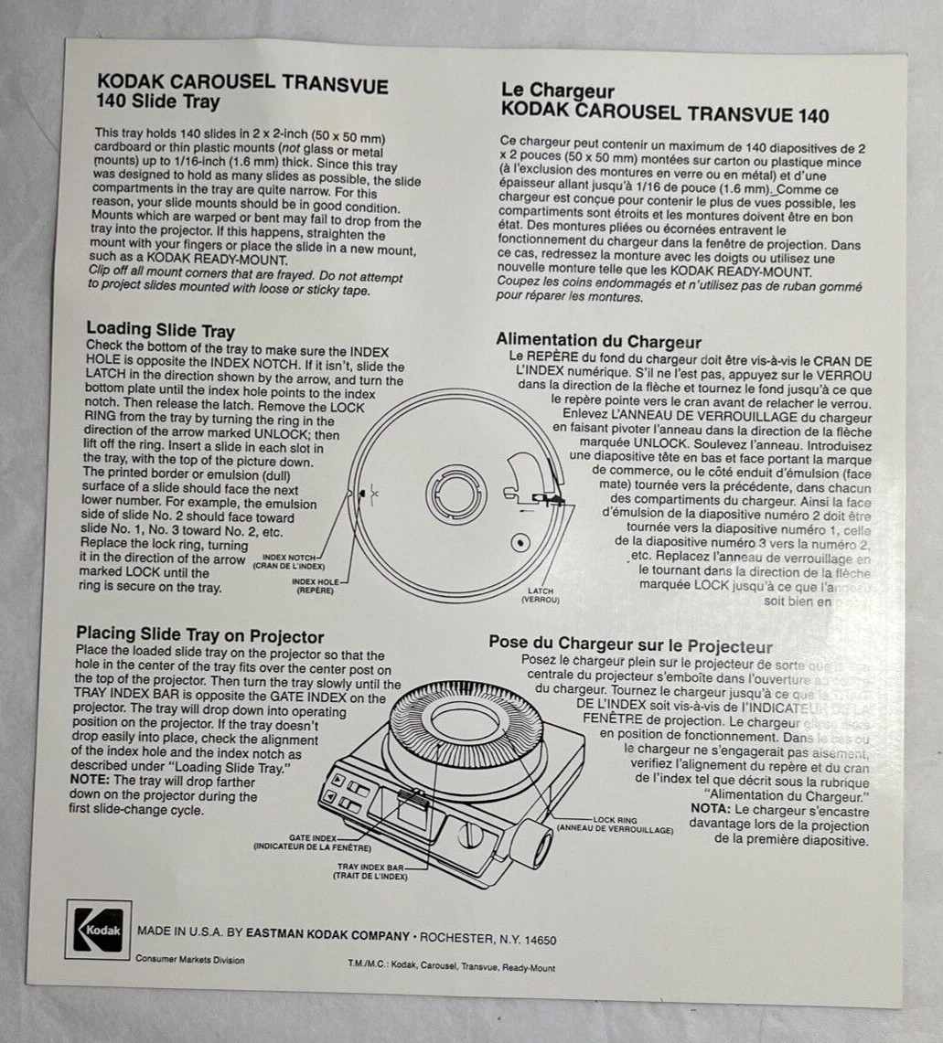 Kodak Carousel Transvue 140 Projector Slide Tray With Original Box And Papers