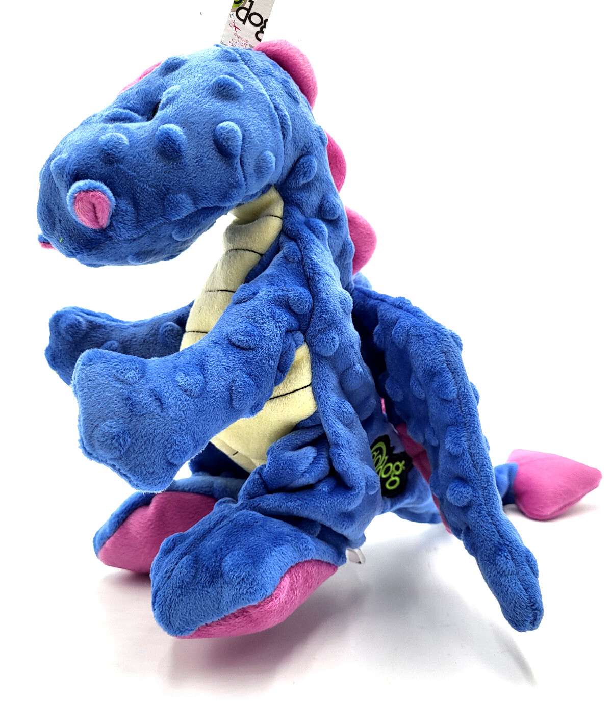 GoDog Dragon Periwinkle Large Plush Squeaky Interactive Toss Shake Dog Toy 11