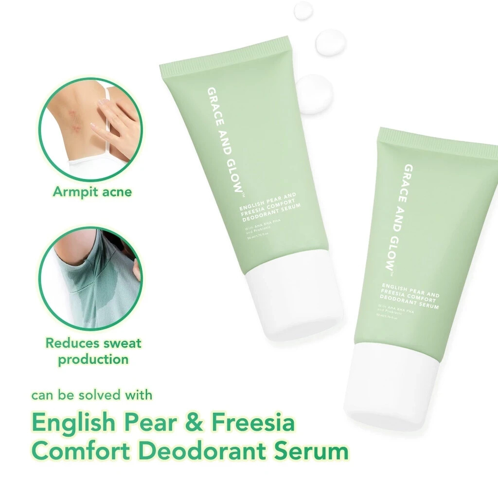 2 X Grace and Glow English Pear Freesia Deodorant Serum Roll On for Pore Care
