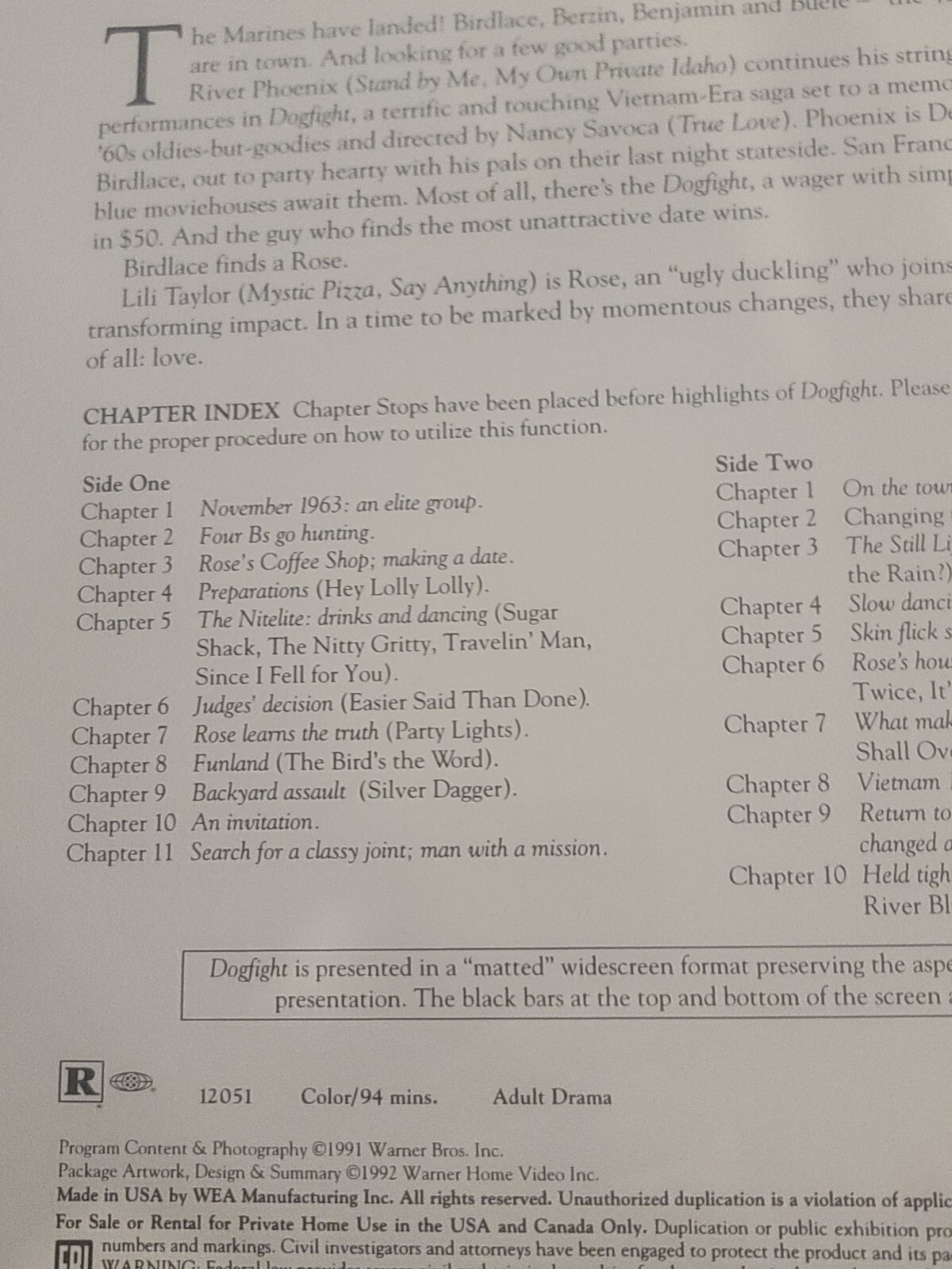 Dogfight Laserdisc, 1992 NEW SEALED