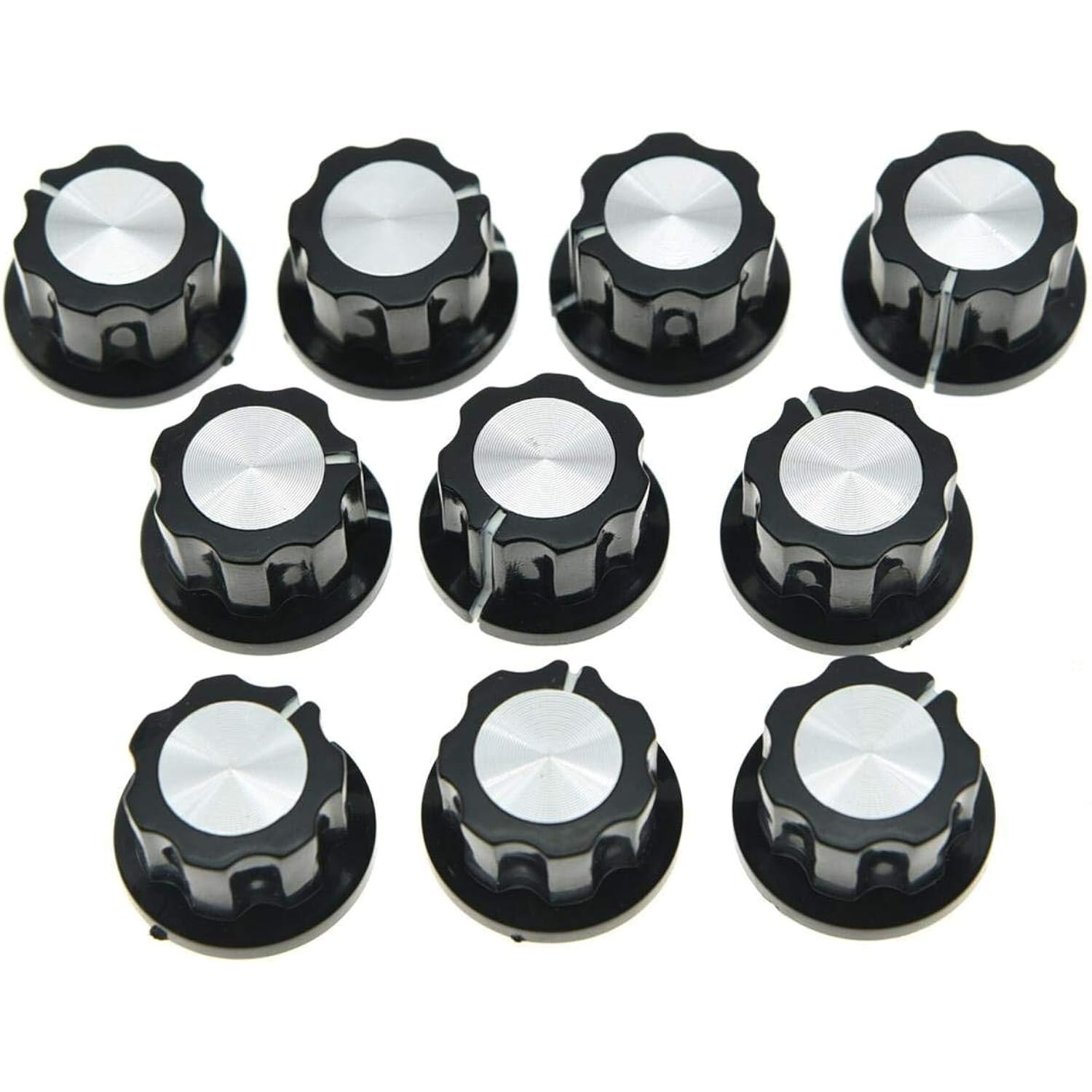 как выглядит 10x Guitar Mini Effect Pedal Knobs 6mm Black with Silver Cap for Boss Pedals фото