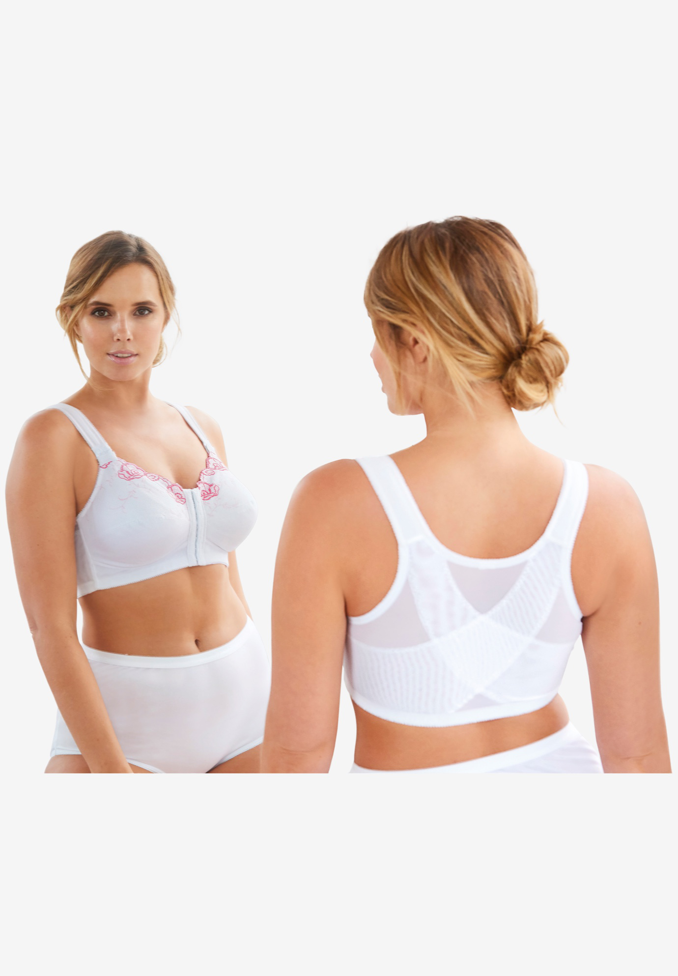 Comfort Choice Women's Plus Size Front-Close Embroidered Wireless Posture Bra