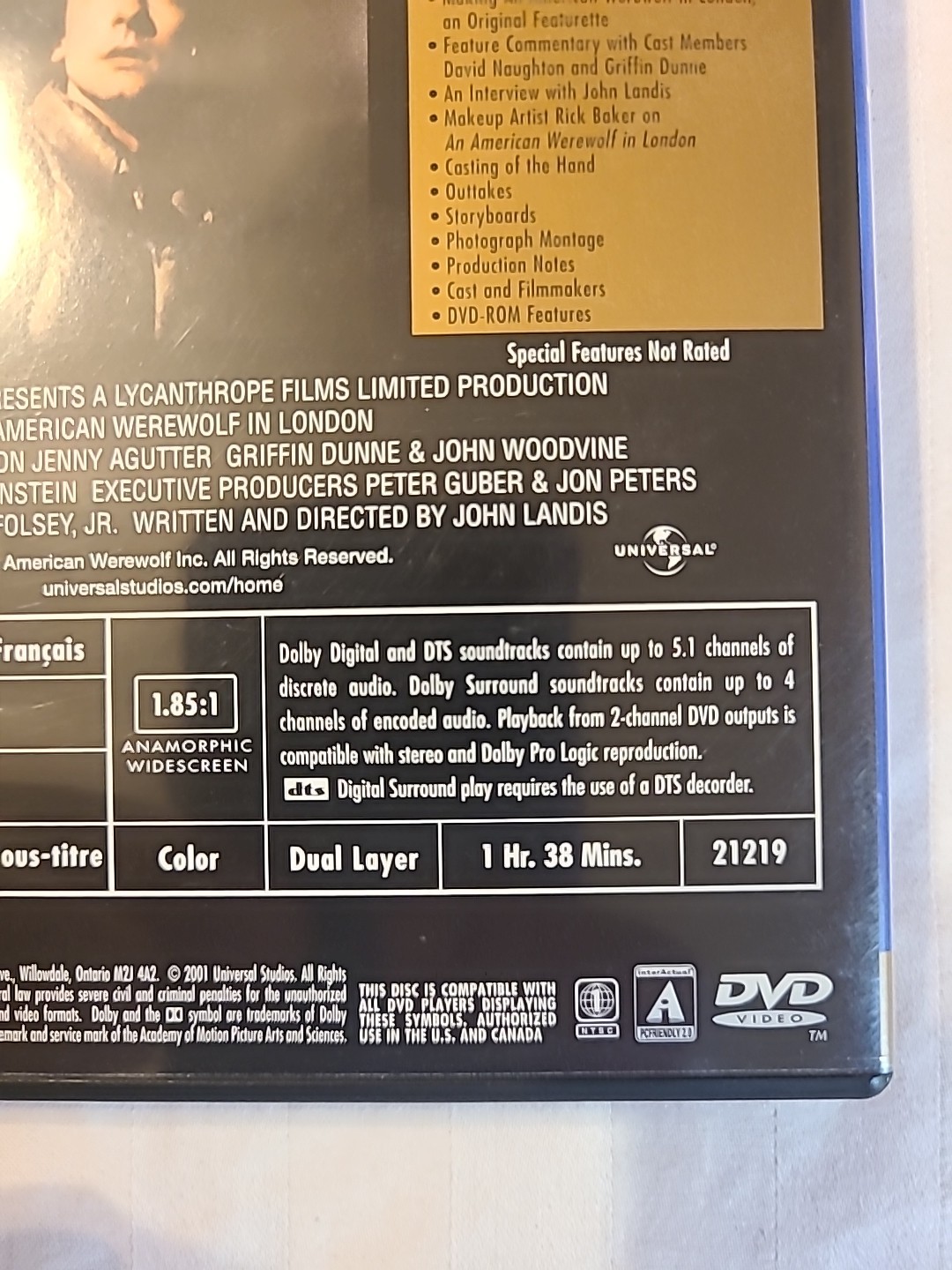 An American Werewolf In London DVD, 2006 Collector's Edition Widescreen 1981