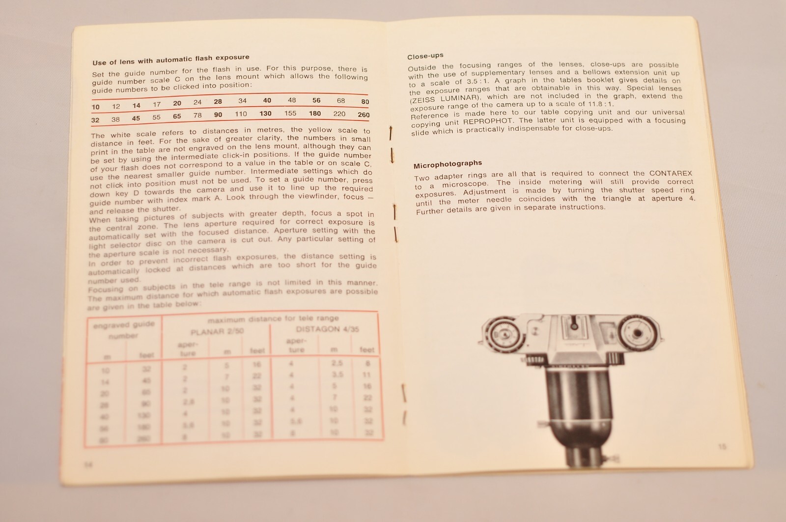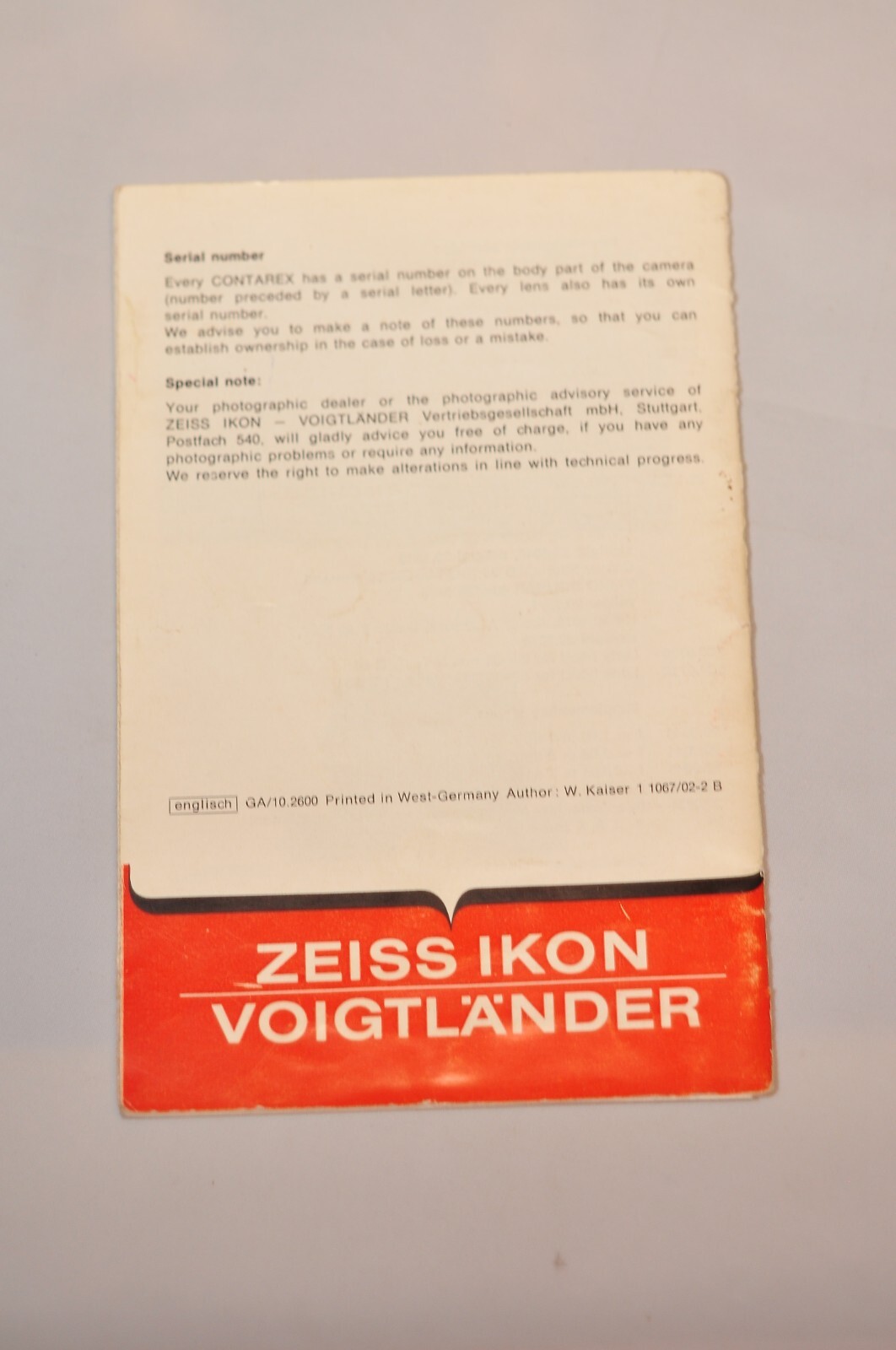 Zeiss Ikon Contarex Super Instruction Manual, Original, Not a Copy c1967