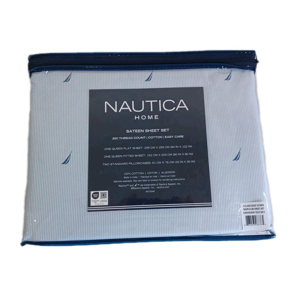 New Nautica Sheet Set -Boat Stripe - Light Blue Stripe, Navy Sails, New