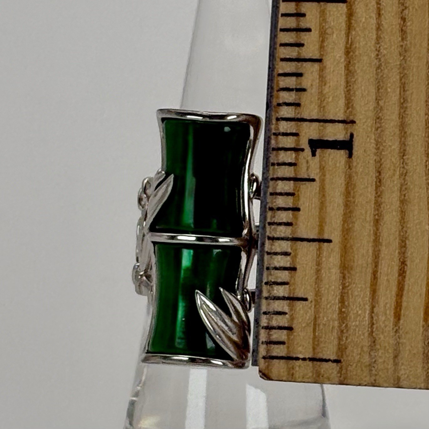 Green Jadeite Bamboo Inspired 925 Sterling Silver Ring Size 6