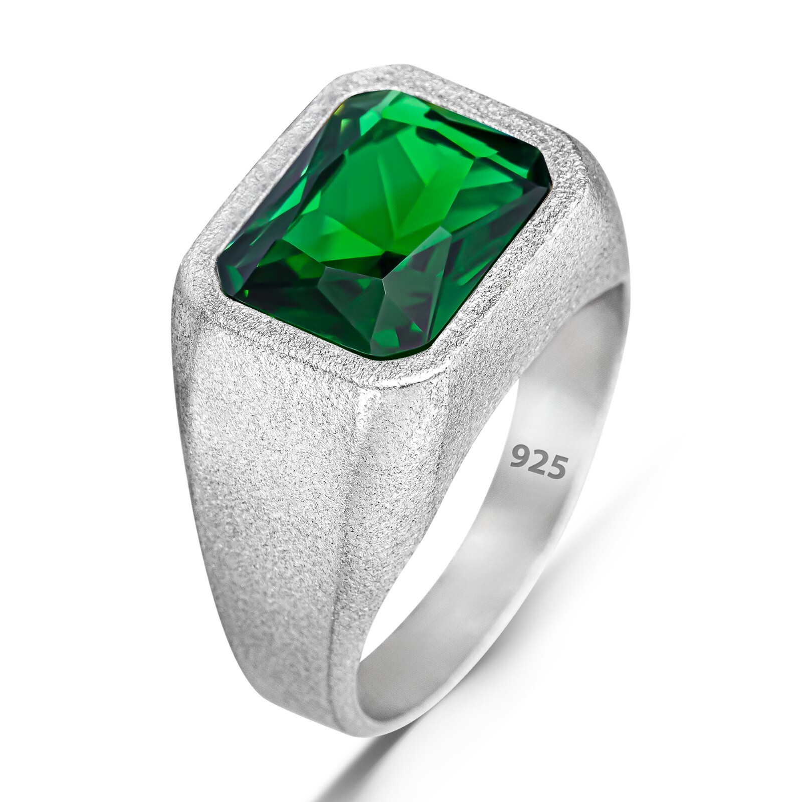 как выглядит 925 Sterling Silver Basic Handmade Rectangle Green Zircon Stone Men Ring фото