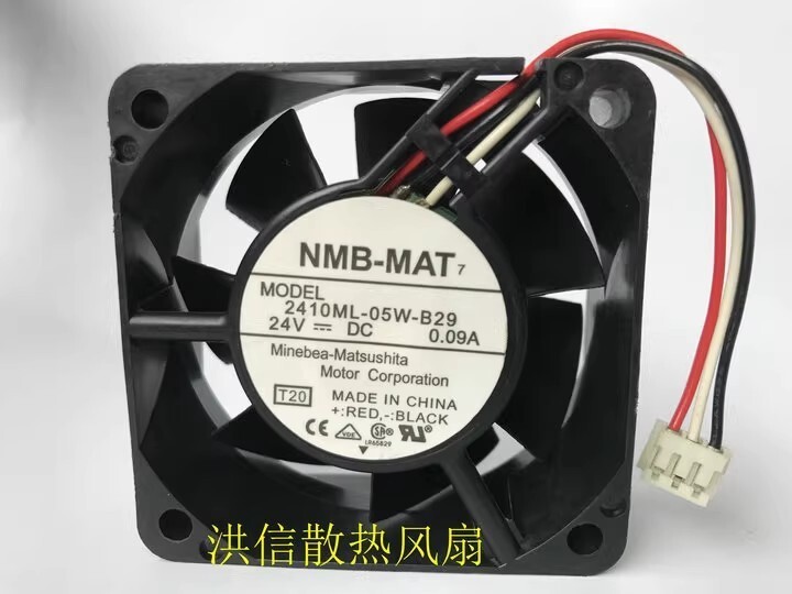 • NMB 2410ML-05W-B29 DC24V 0.09A 60 60 25MM 3-Pin Inverter Cooling Fan