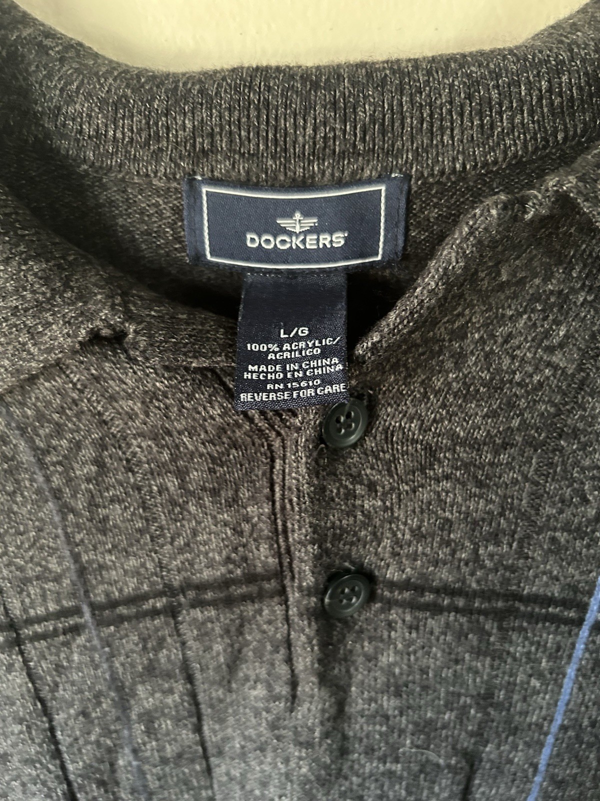 как выглядит dockers lightweight pullover sweater for men large dark grey with stripes фото