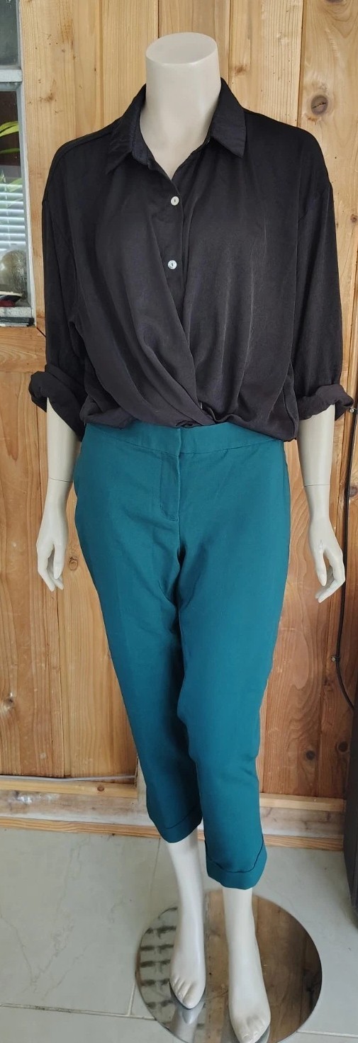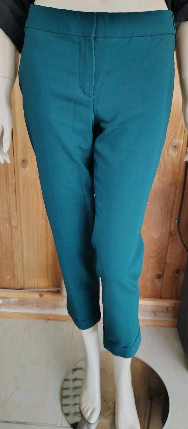 как выглядит EXPRESS EDITOR Size 8 Ankle Length Hem Mid-Rise Green Trousers фото