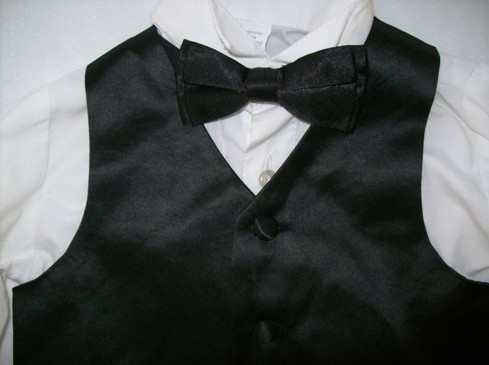 Boy 2: BLACK FORMAL TUXEDO: PANTS, SHIRT, VEST, COAT, BOWTIE