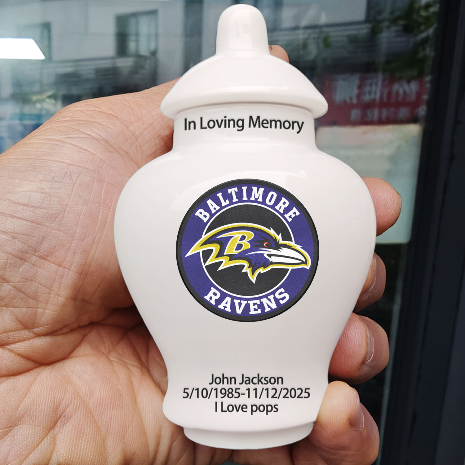 как выглядит Ceramic Mini Urn  Baltimore Ravens Football Theme, Custom Text Number фото