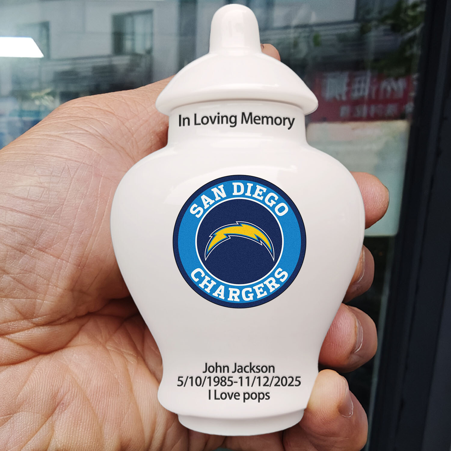 Ceramic Mini Urn Los Angeles Chargers Football Theme, Custom Text Number