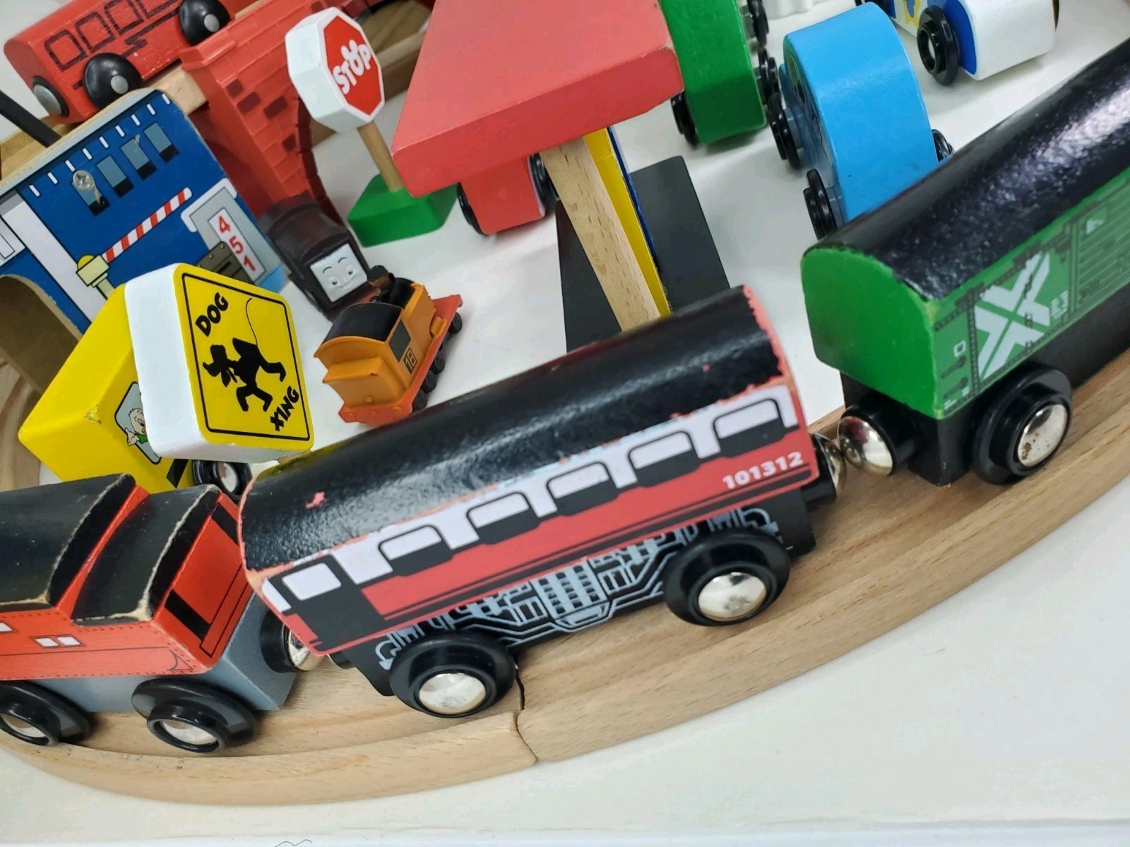 как выглядит Wooden Train Set Disney Mickey Mouse And Friends Bridge Buildings Signs Cars 7lb фото
