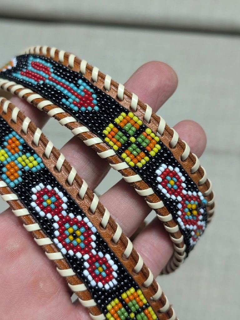 как выглядит vintage NATIVE AMERICAN INDIAN buckle belt 32 handcrafted BEADED leather western фото