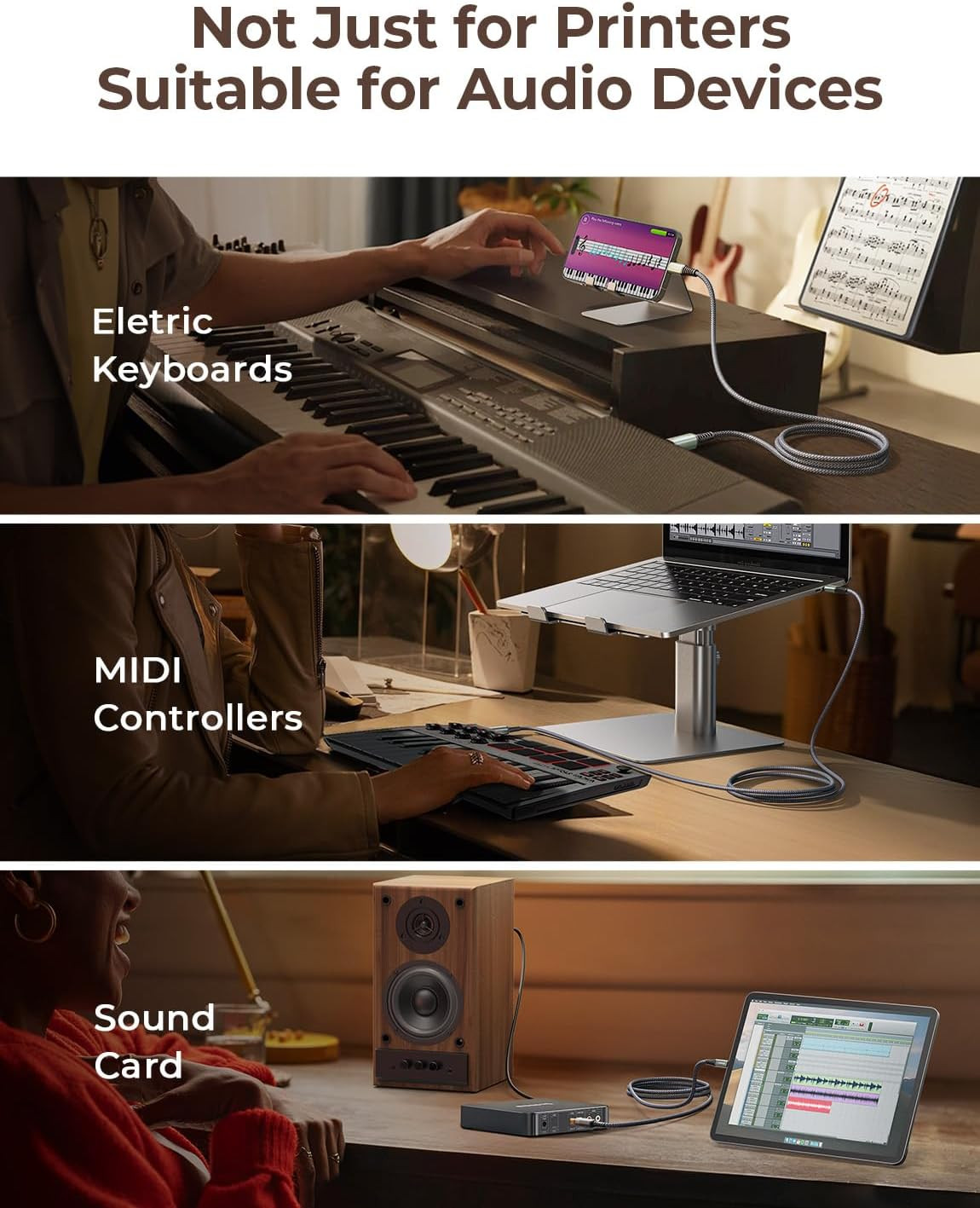 Special Feature: Braided, Clear Printing, High Speed, MIDI Cable, 480Mbps Transfer