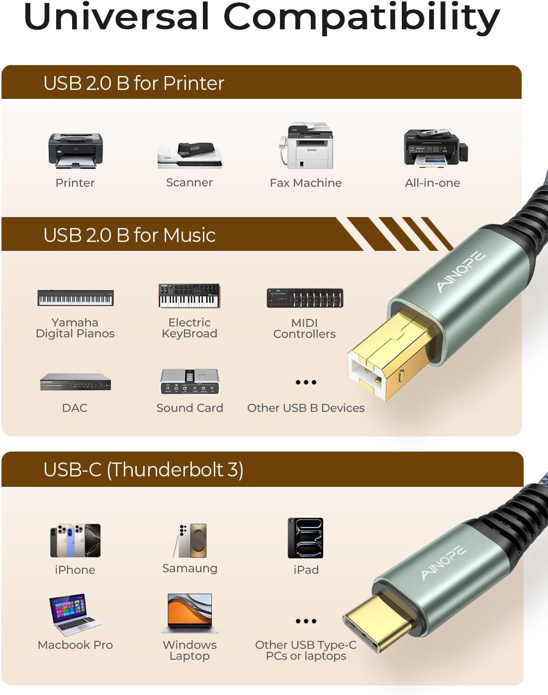 как выглядит AINOPE USB B to USB C Cable High Speed USB C to USB B Printer Cable for Macbook фото