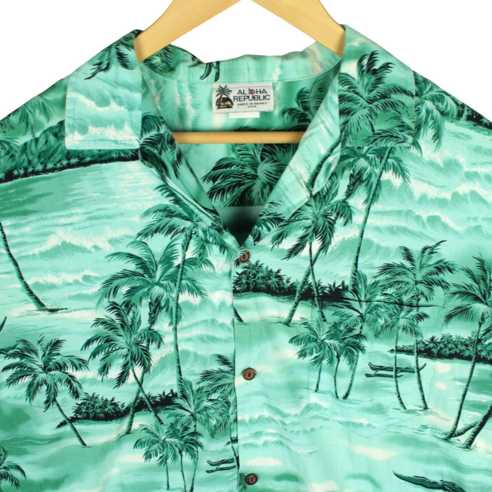 VTG Aloha Republic Hawaiian Shirt 100 Cotton Mens L Green Tropical Palm Scene