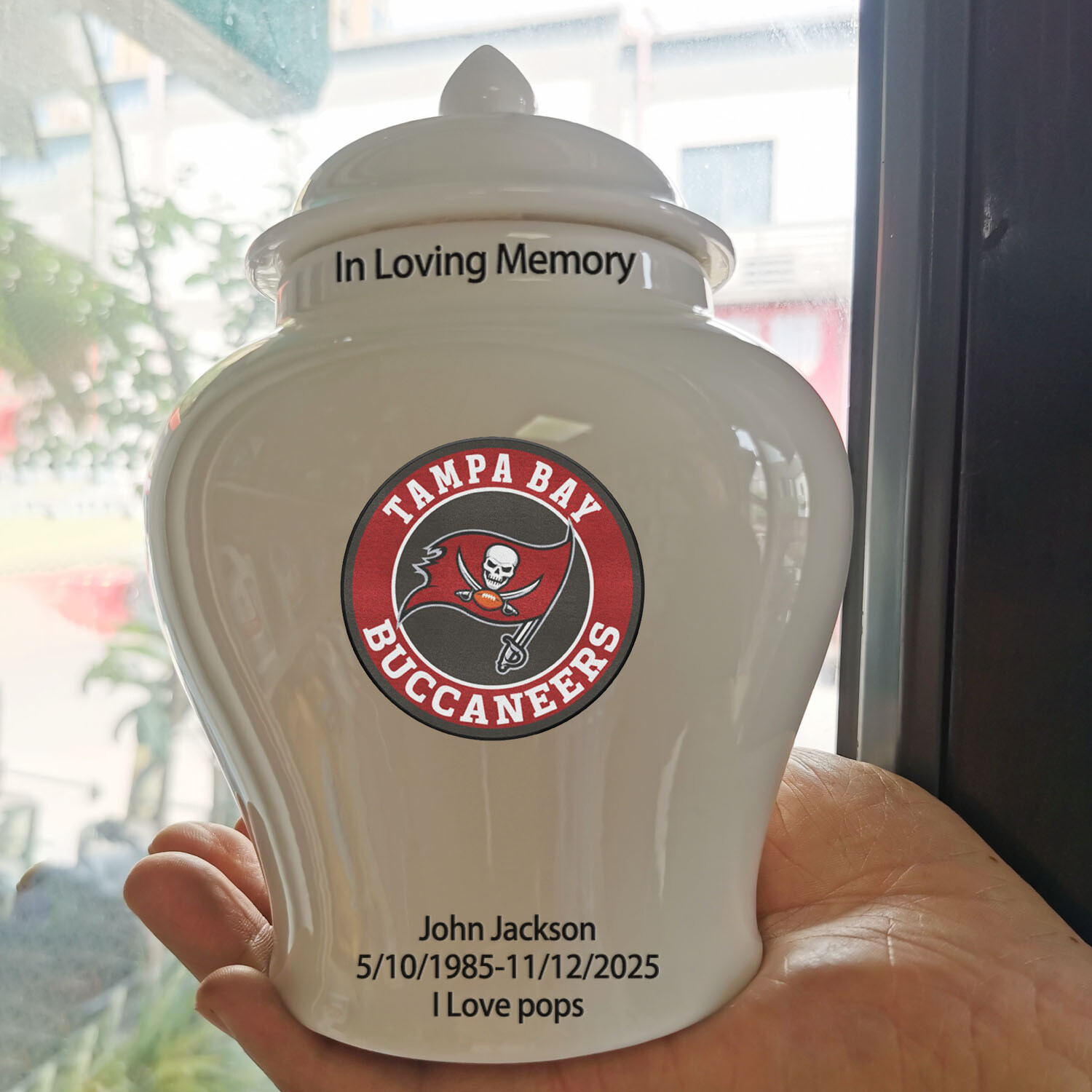 Ceramic Medium Urn Tampa Bay Buccaneers Football Theme, Custom Text Number
