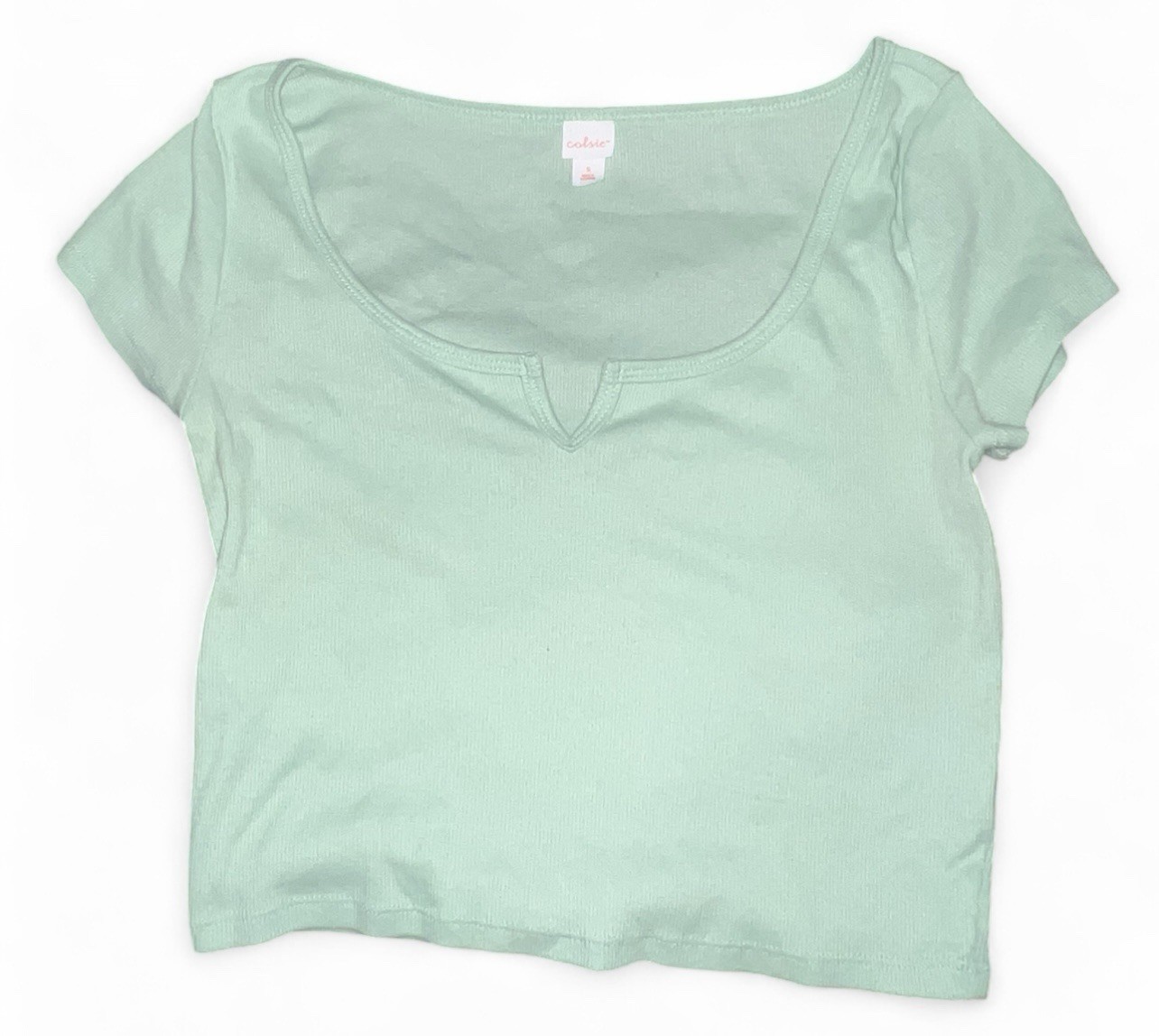 Colsie Women's Notch Collar Neck Short Sleeve Lounge Cropped T-Shirt size S