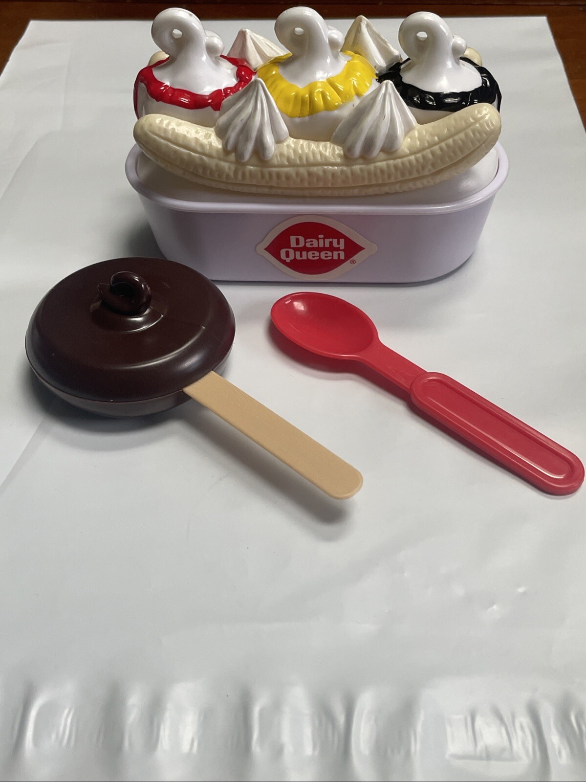 как выглядит Dairy Queen Ice Cream Play Food Set Dilly Bar and Banana Split Vintage Toy фото