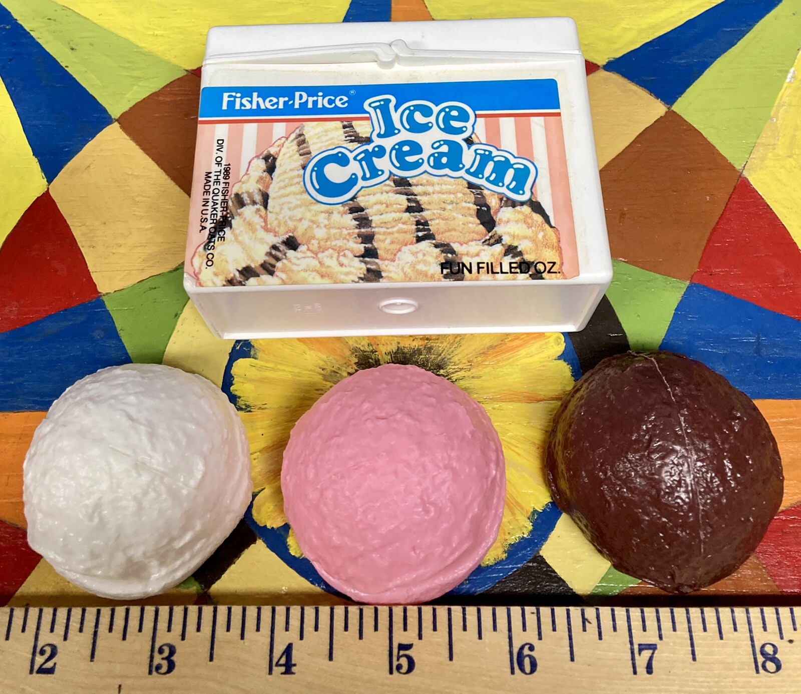 Fisher Price Play Food Fun Ice Cream Box Scoops Tikes Treat 1989 Quaker FPI-3SP