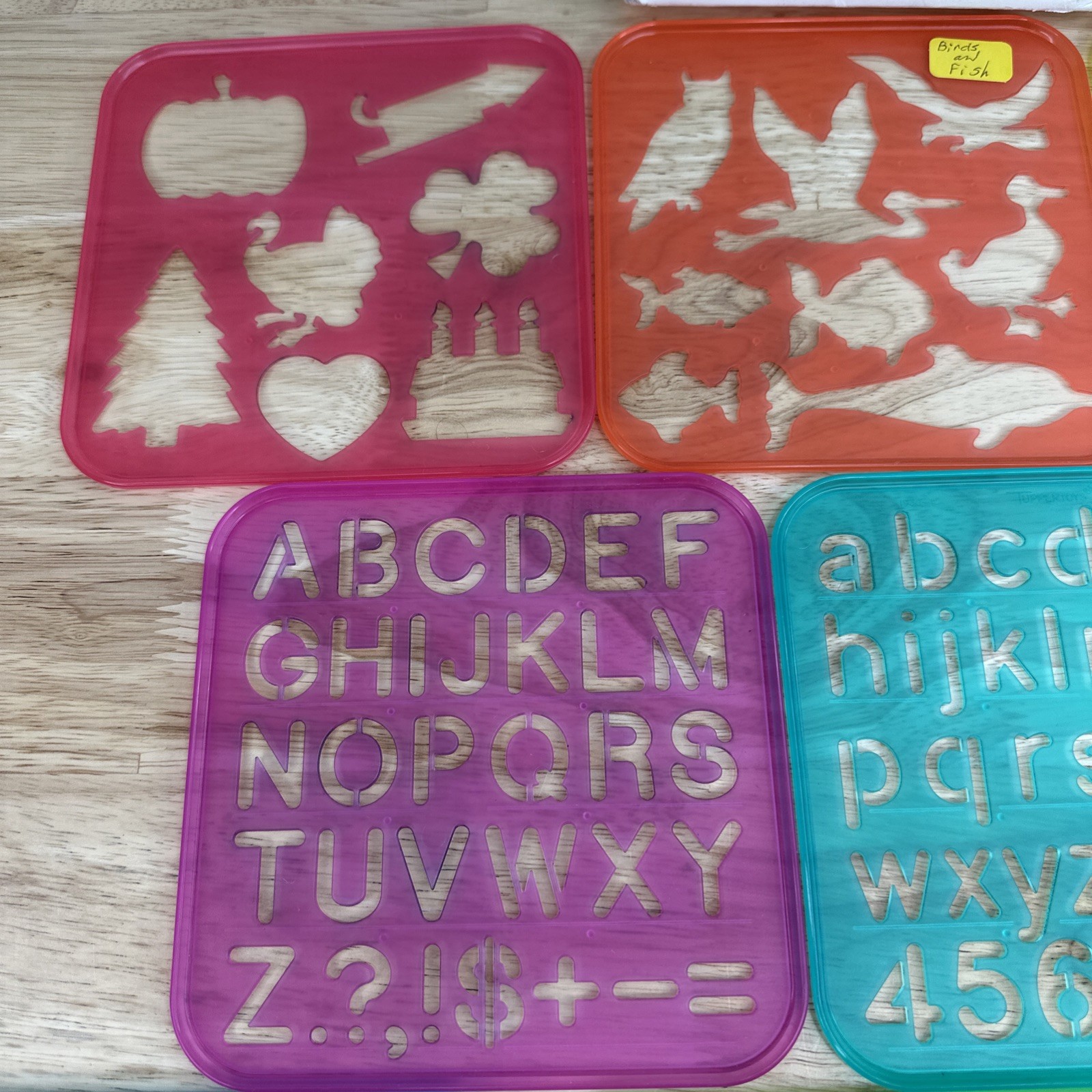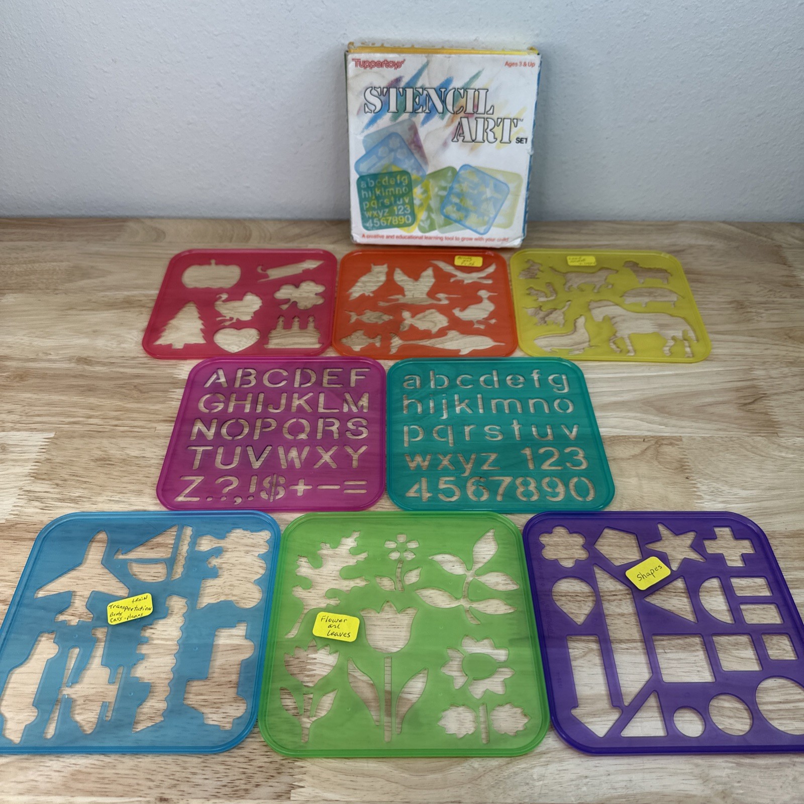 80's Vtg Tuppertoys Tupperware Stencil Art Set Complete Letters Animals Shapes