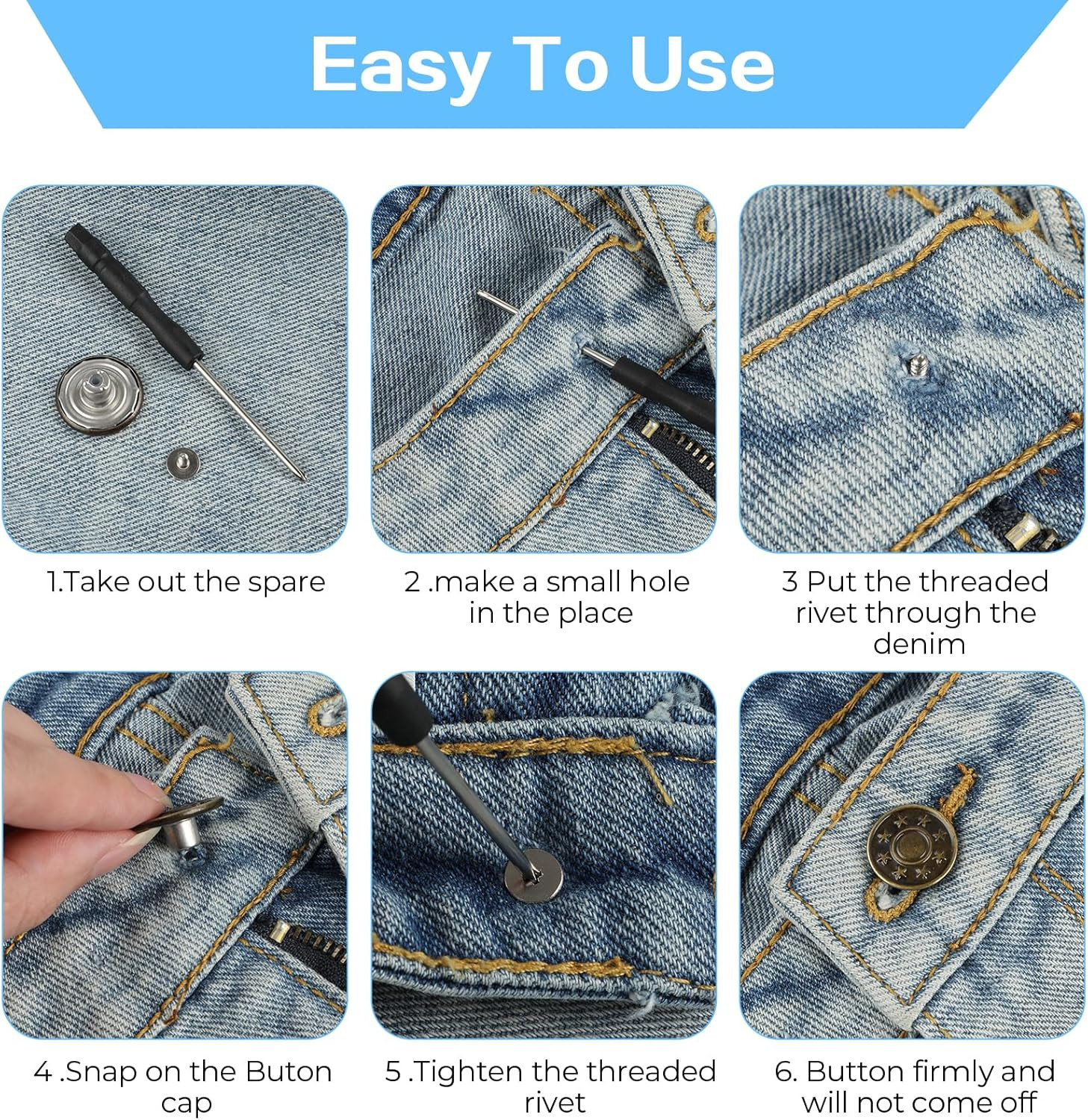 16 PCS Jeans Buttons, 17Mm No Sew Jean Button Replacement for Loose Jeans Trouse