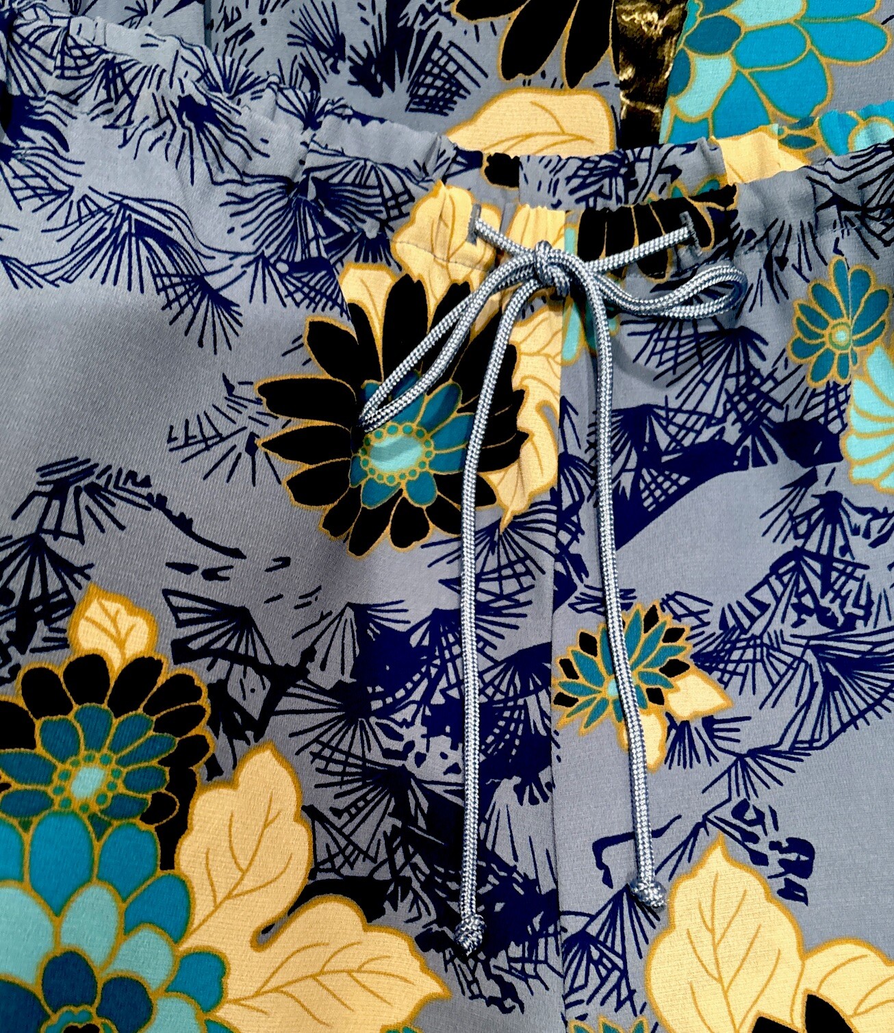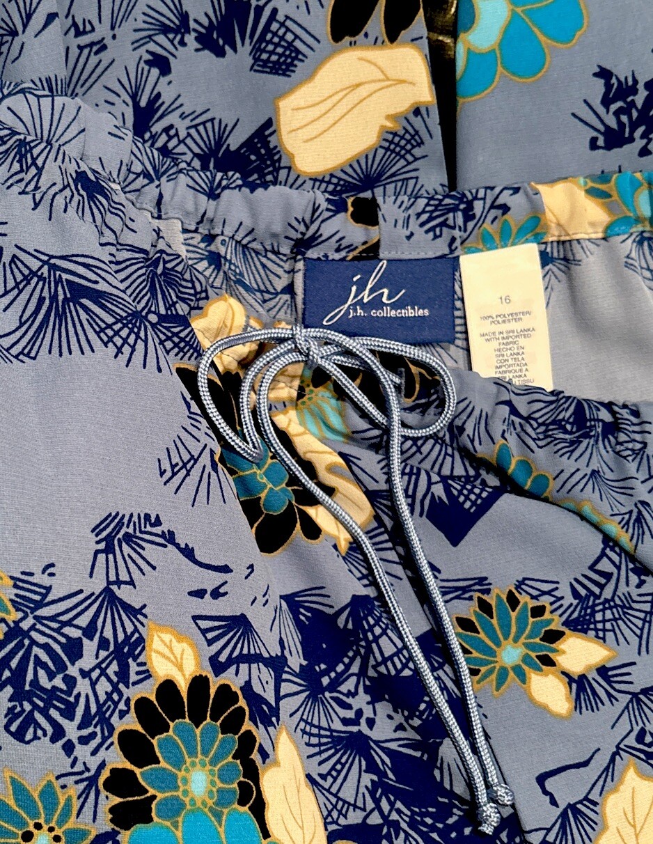 Vintage J.H.Collectibles Wide Leg Polyester Floral Print Crop Pants Tie Waist 16