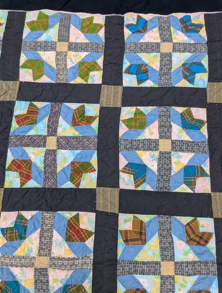 • Vintage Beautiful Quilt Different Pieces Hand Woven size 81x64 inches