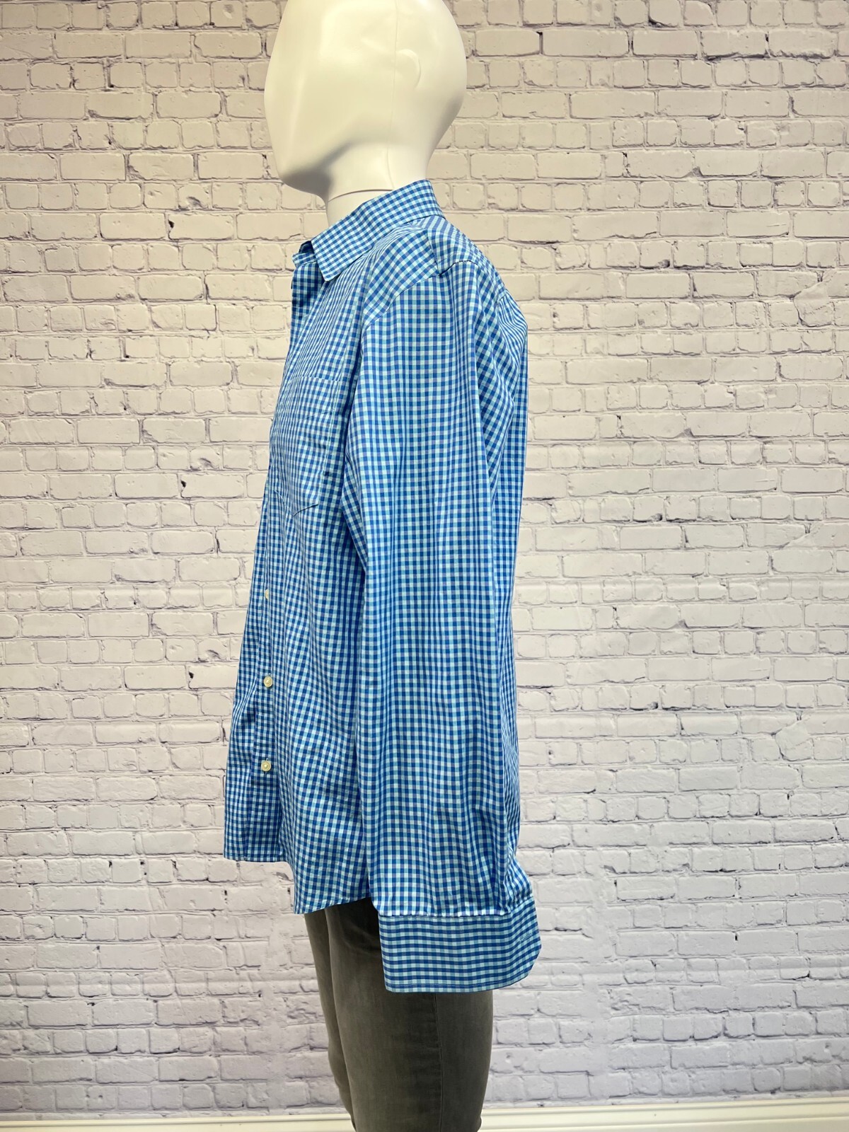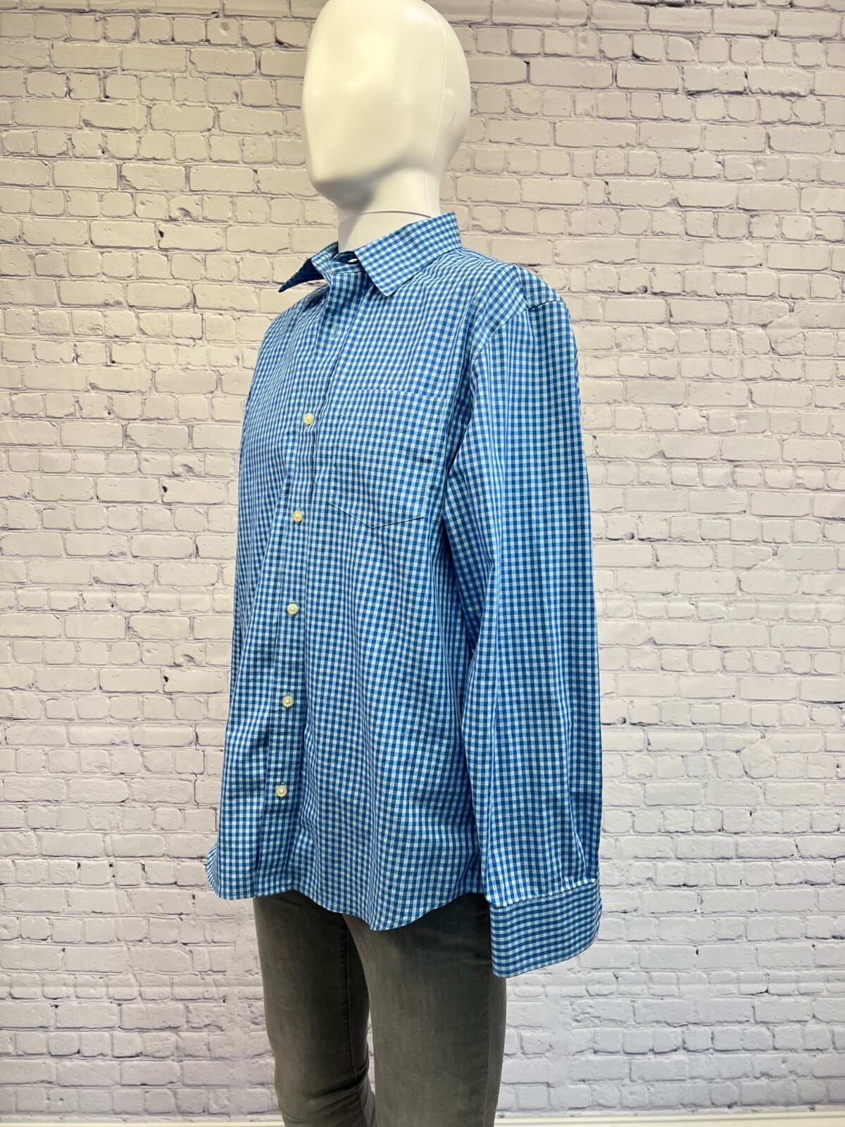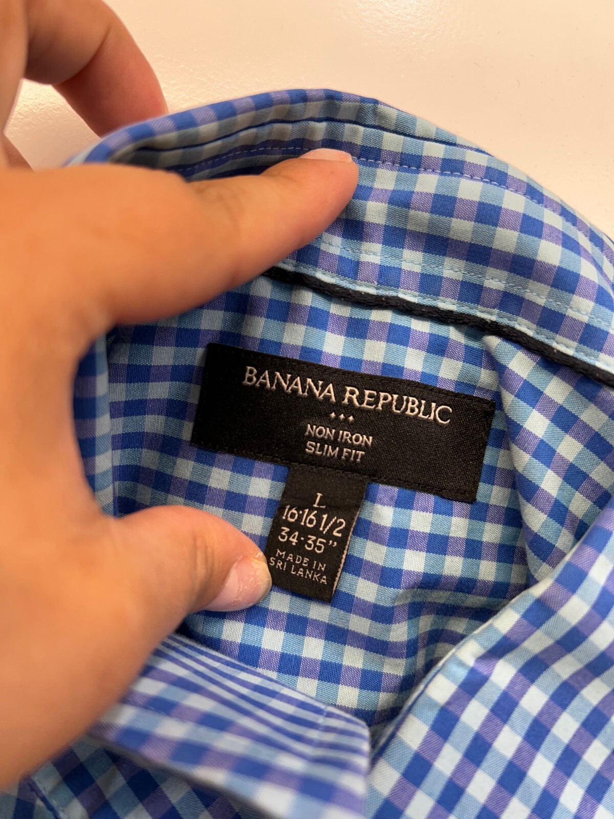 как выглядит Banana Republic Mens L 16-16.5 Blue Plaid Non Iron Slim Fit Long Sleeve Shirt фото