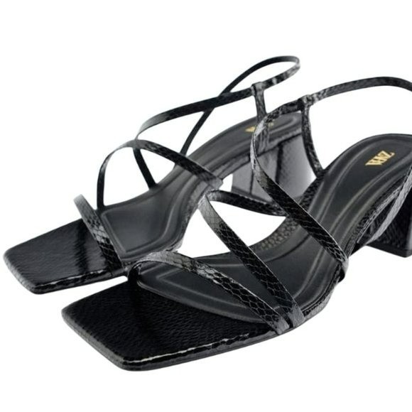 ZARA MID HEIGHT BLOCK HEEL SANDALS SS22 BLACK 2329/911