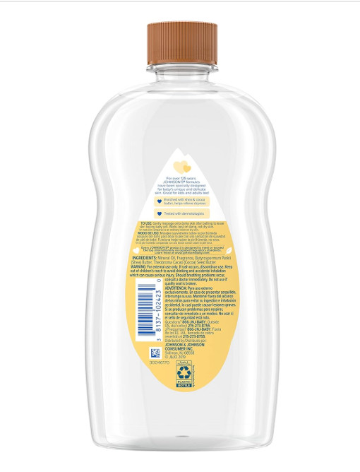 как выглядит Johnsons Baby Oil, Mineral Oil Enriched with Shea Cocoa Butter 20 fl. oz фото