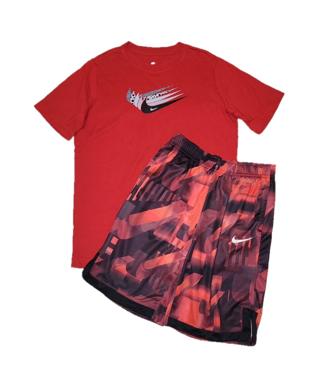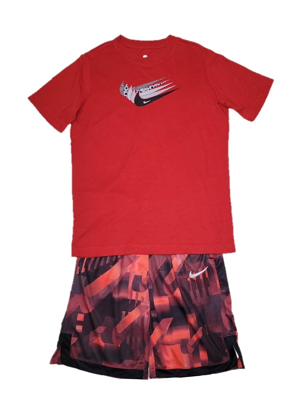 Nike Dri-fit Youth XL Red/Black Athletic Shorts And Logo T-shirt Set