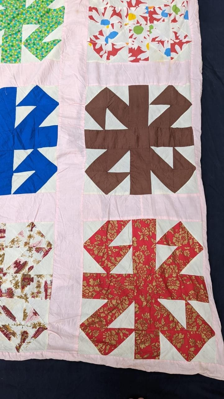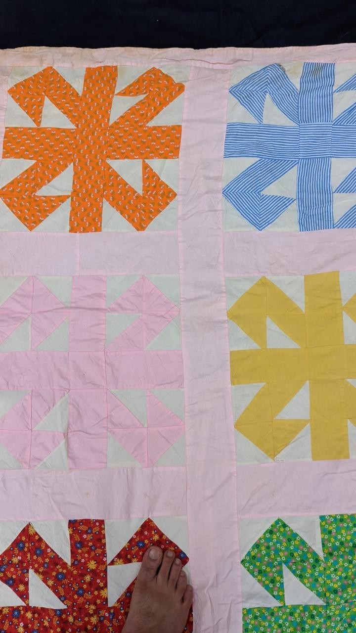 • Vintage Beautiful Quilt Different Pieces Hand Woven size 84x65 inches