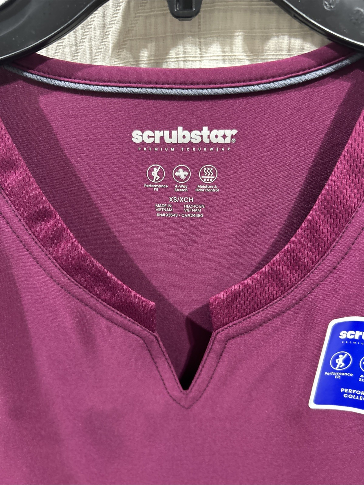 Scrub Star Ladies Notch Neck Top Wine Size XS New