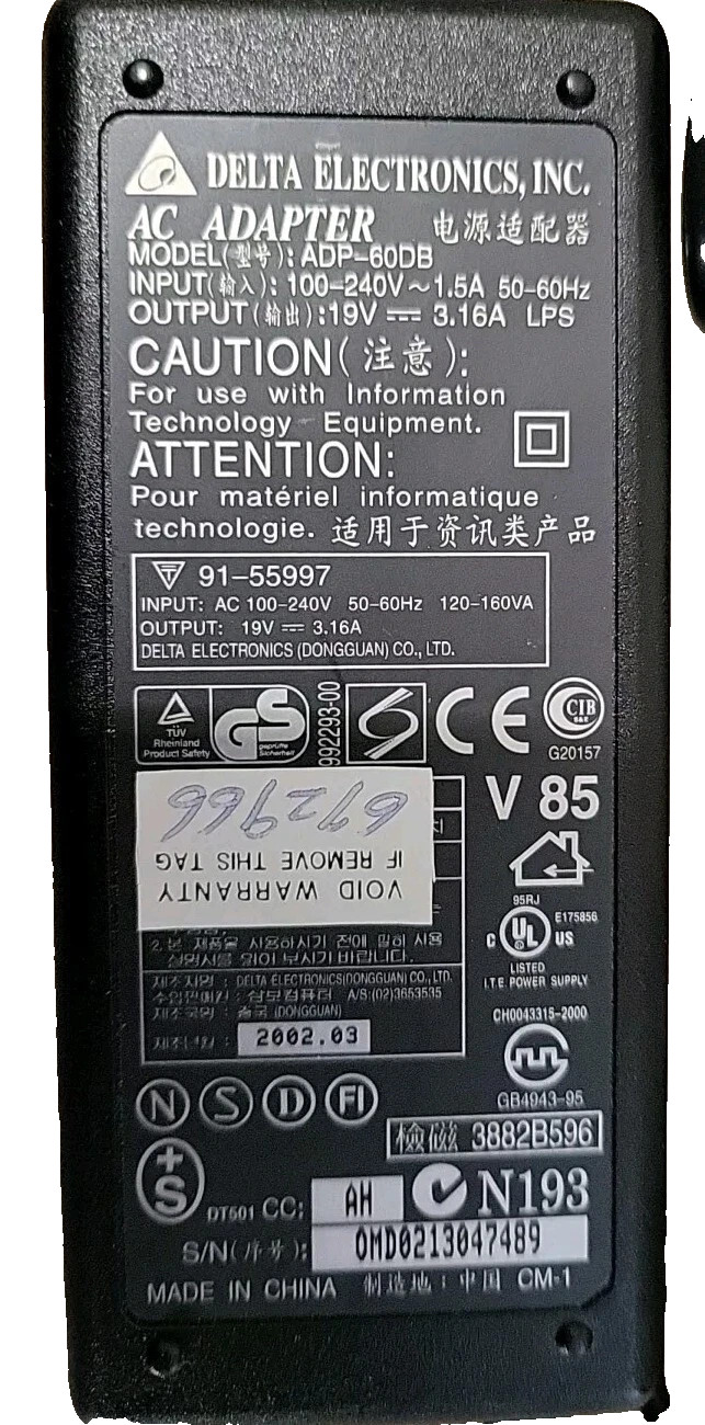 Delta Electronics ADP-60DB AC Adapter 19V 3.16A Power Supply ADP60DB