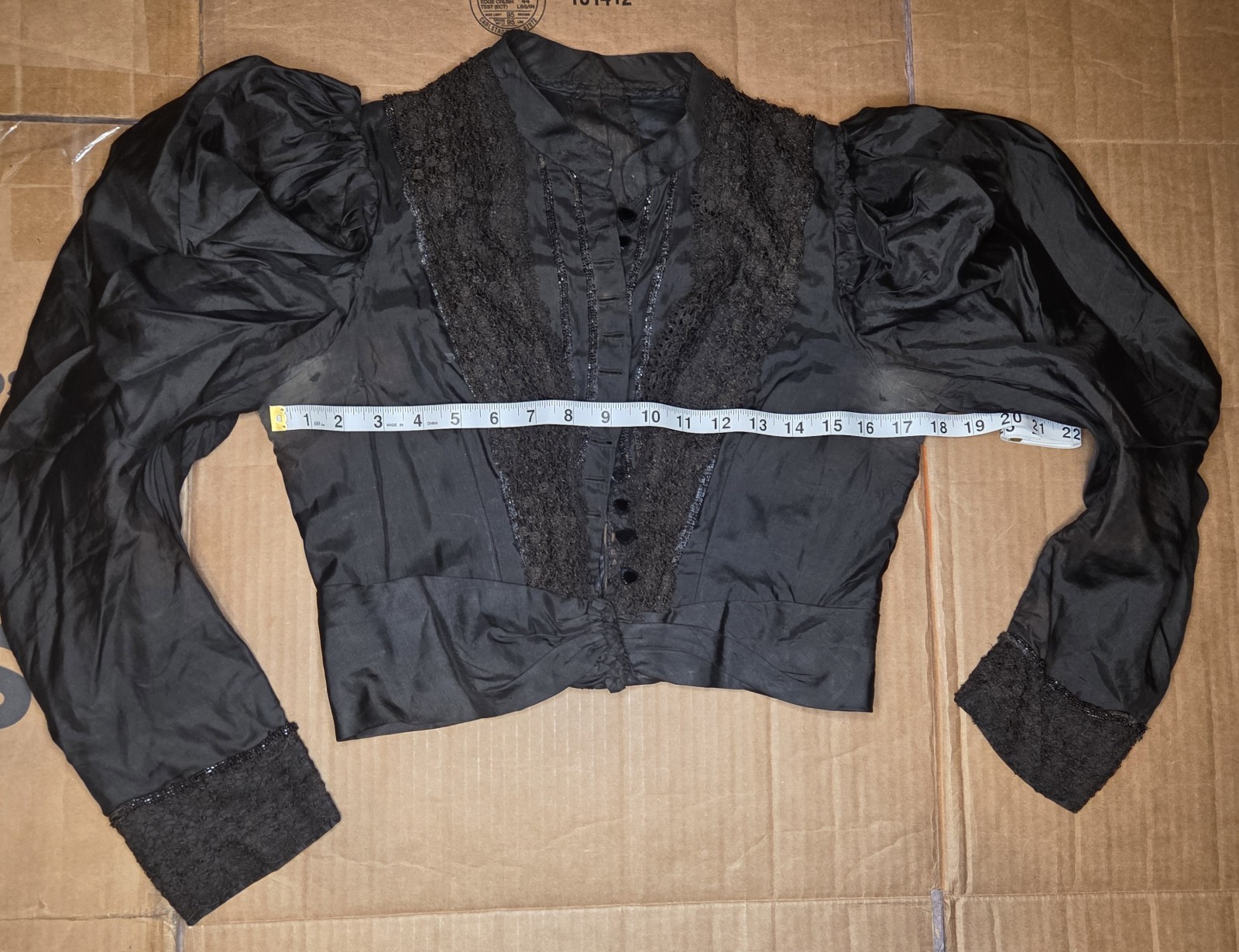 как выглядит Black Victorian Silk Leg Of Mutton Sleeved Bodice With Lace Glass Buttons READ фото