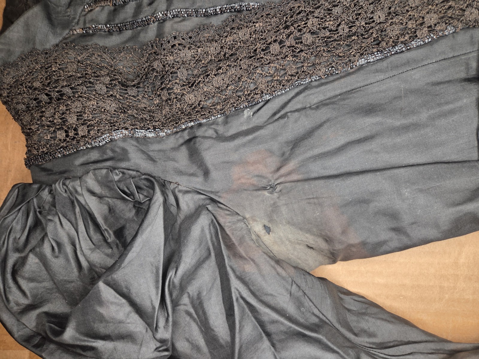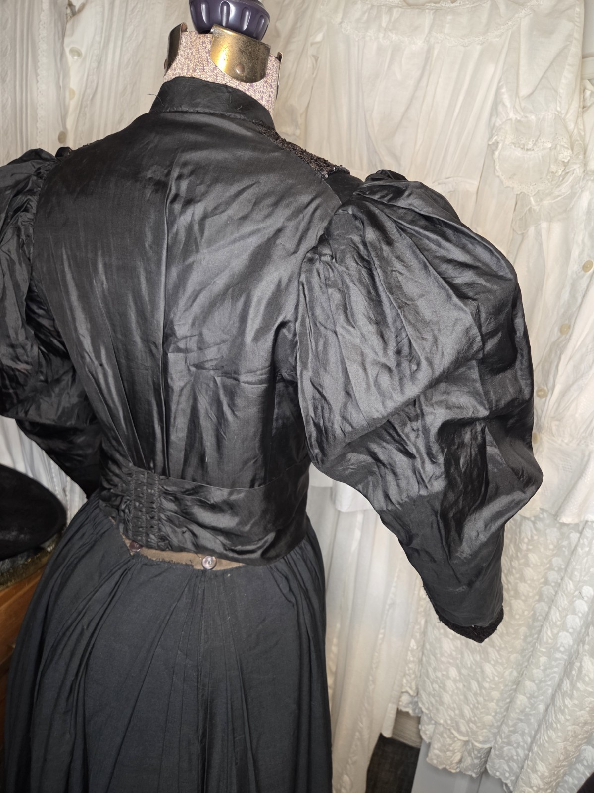 Black Victorian Silk Leg Of Mutton Sleeved Bodice With Lace Glass Buttons READ