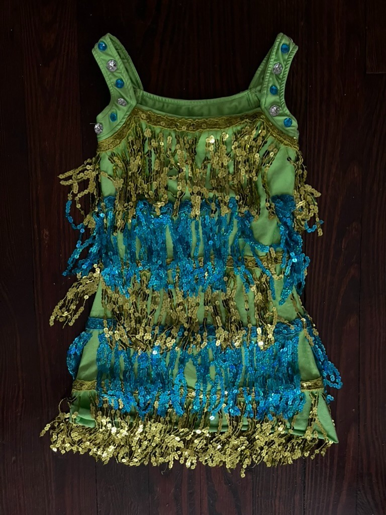 Glamour Dance Dress Child Large Sleeveless Blue Green Sequins Rhinestones