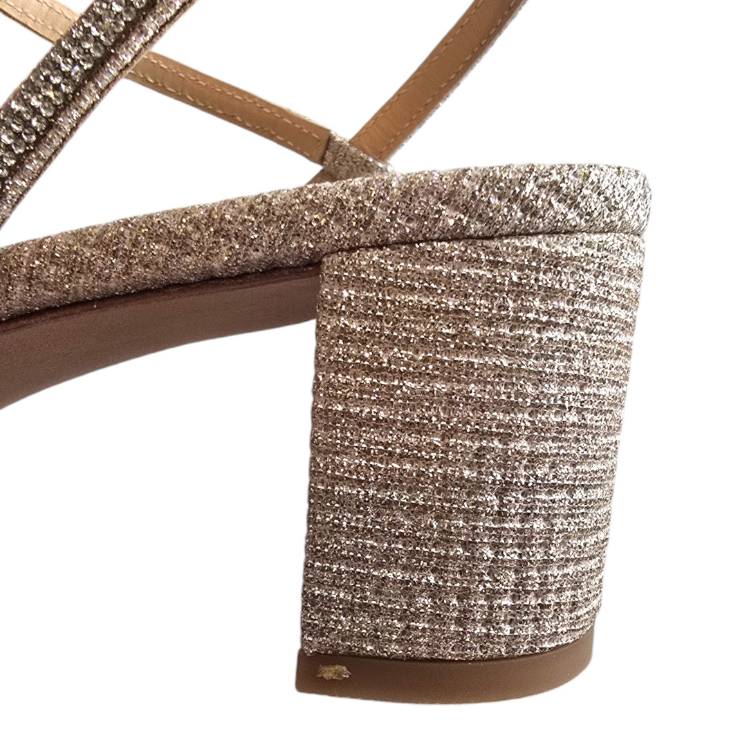 Badgley Mischka NIB Ultima Pale Gold Block Heels Sz 9.5