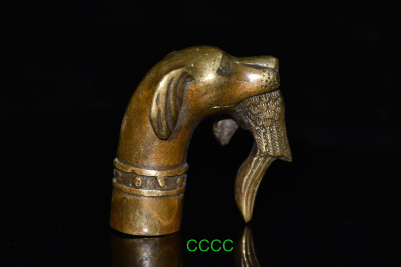 Rare Handmade Bronze Carving Dogs Bite Eagles Cane Walking Stick Head Statue