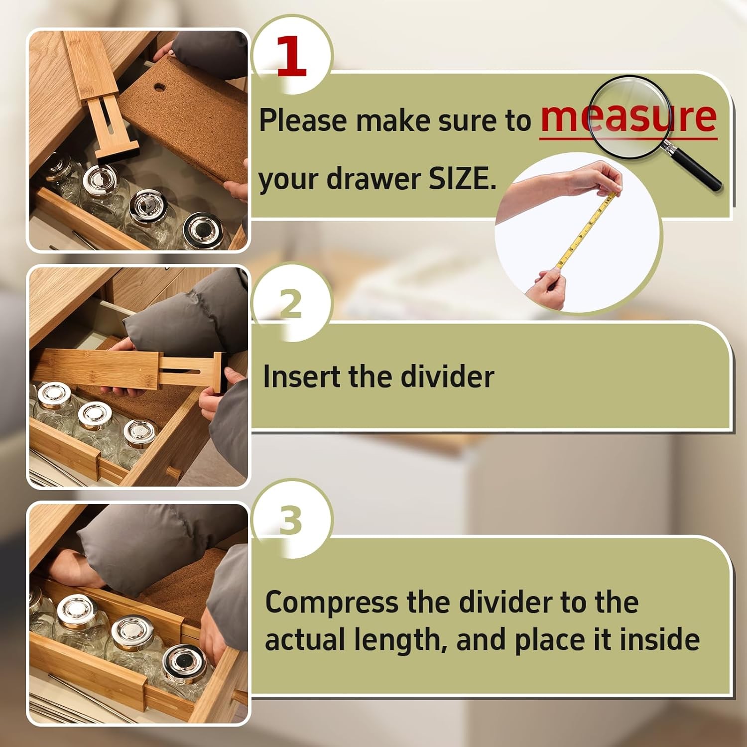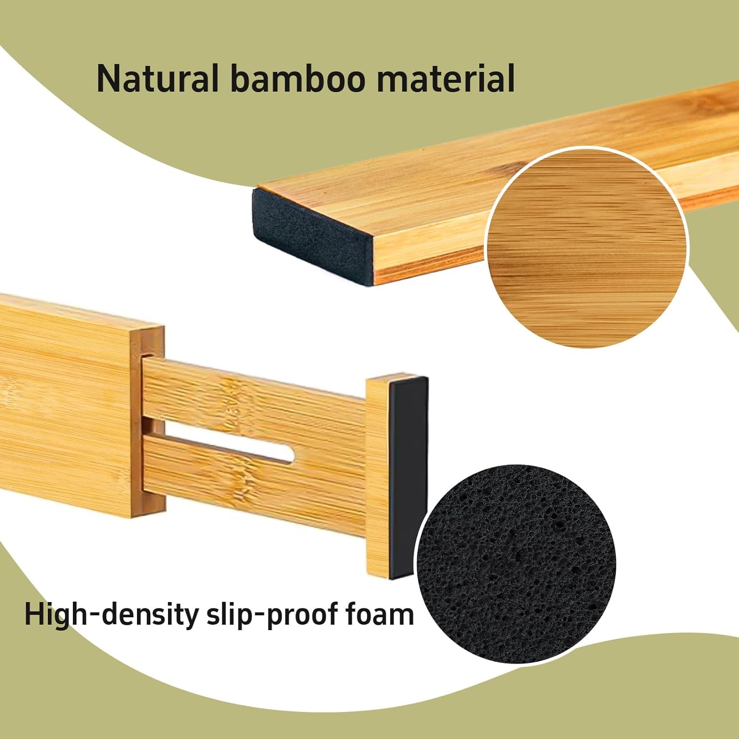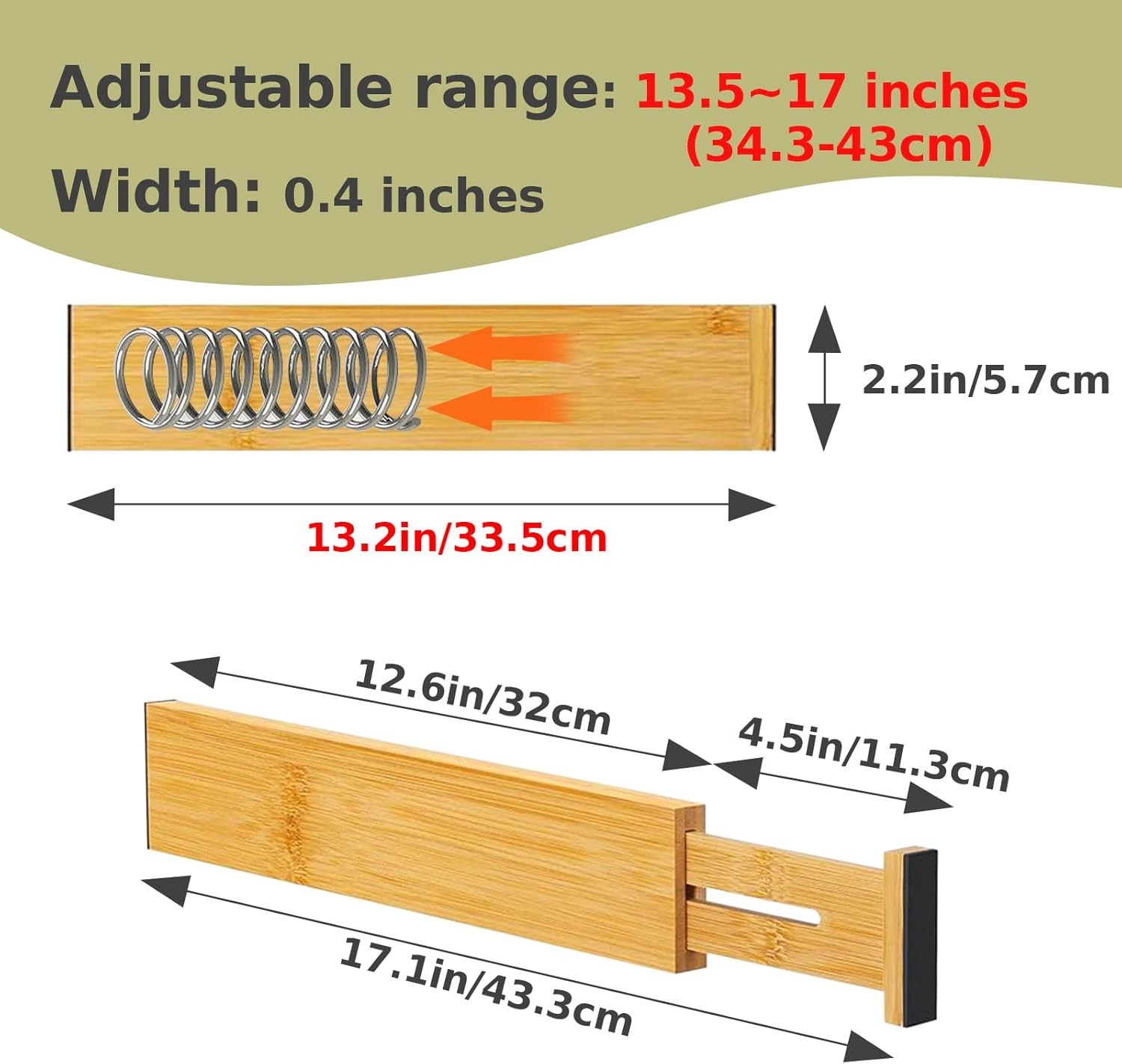 • Dresser Drawer Dividers for Organizing Clothes, 2 Pack 13-17'' Natural Bamboo