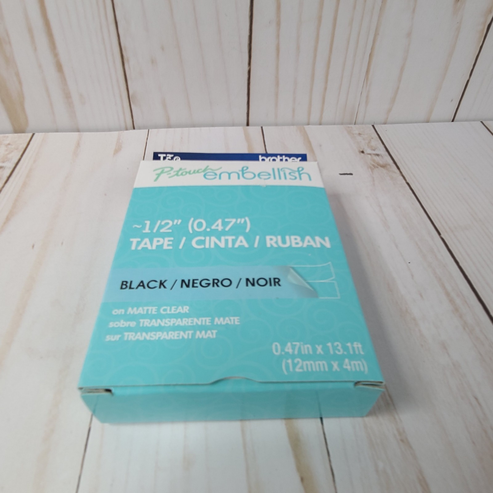Brother P-touch Embellish Tape 1/2 0.47 Black On Matte Clear NEW