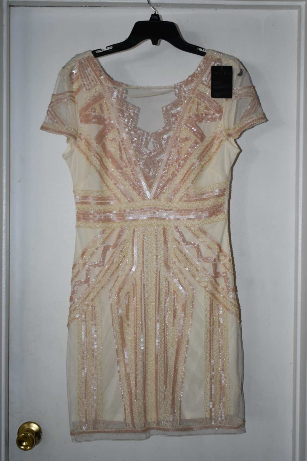 как выглядит Vijiv Beaded Cream and Pink Peach Size 10-12 Dance Skirt Performance Dress фото