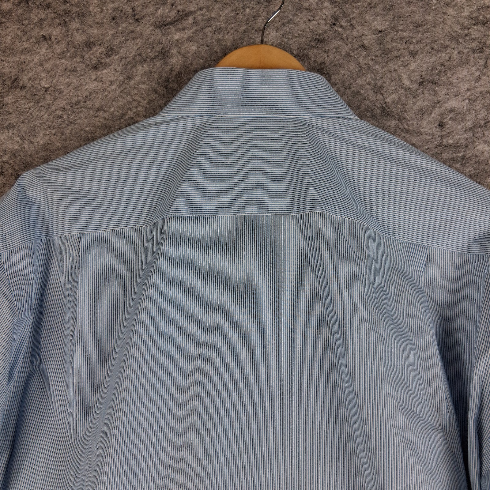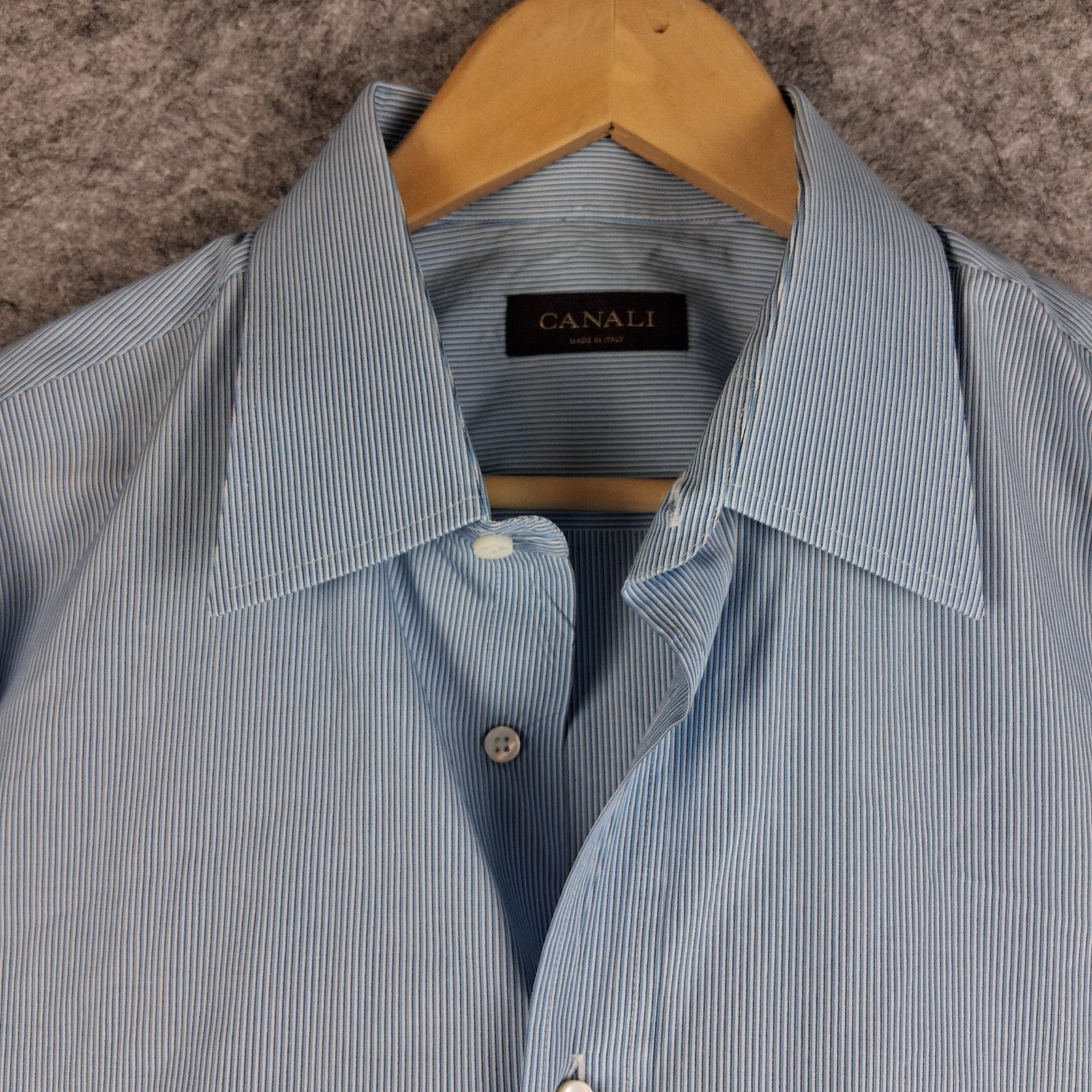 как выглядит Canali Shirt Mens 43/17 Cotton striped blue/white Made In Italy Long Sleeve фото