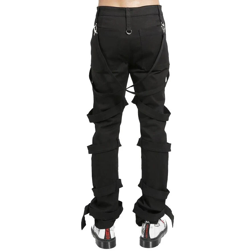 Men Gothic Bondage Trip Pant Alternative Punk Rock Cyber Emo Rave Black Trousers