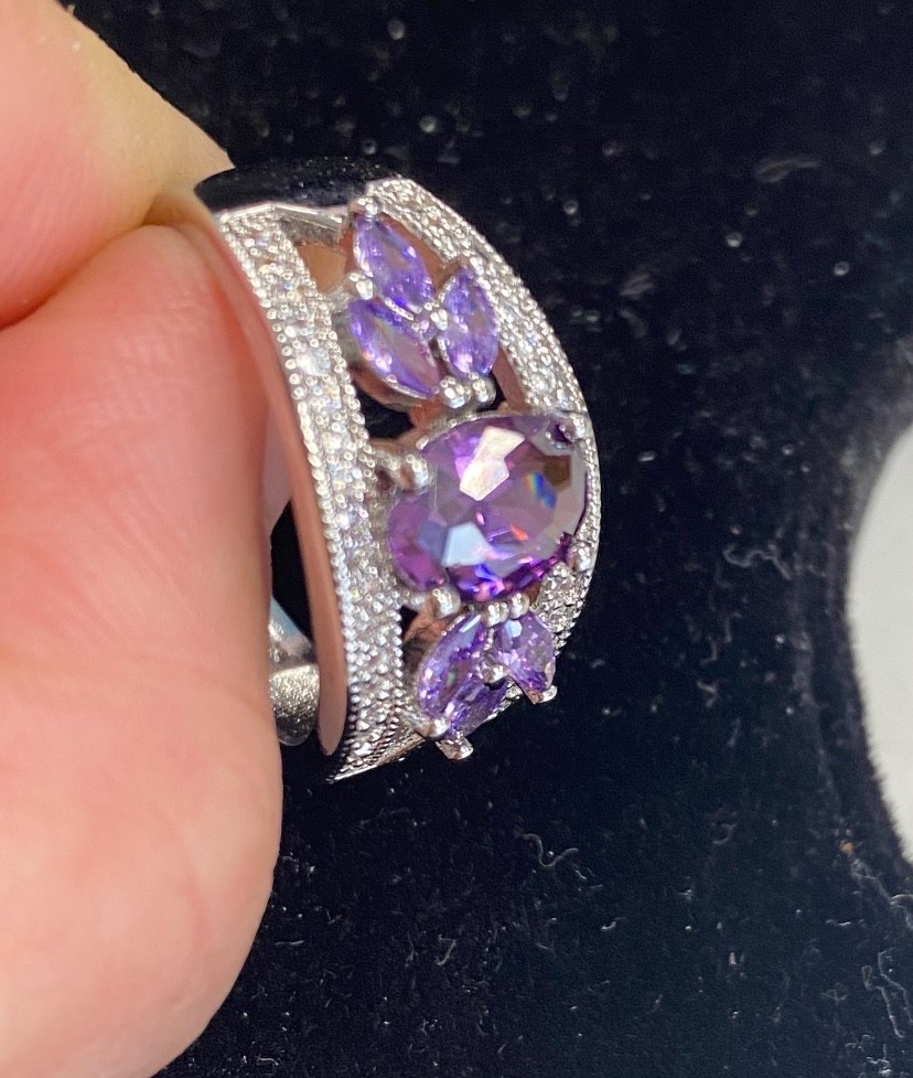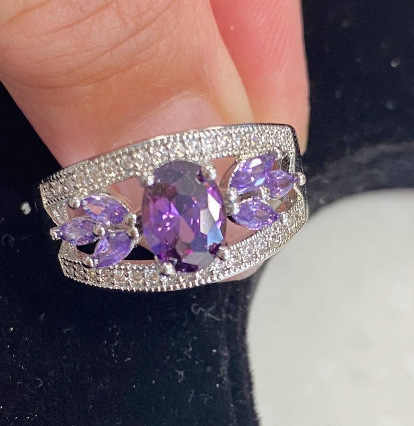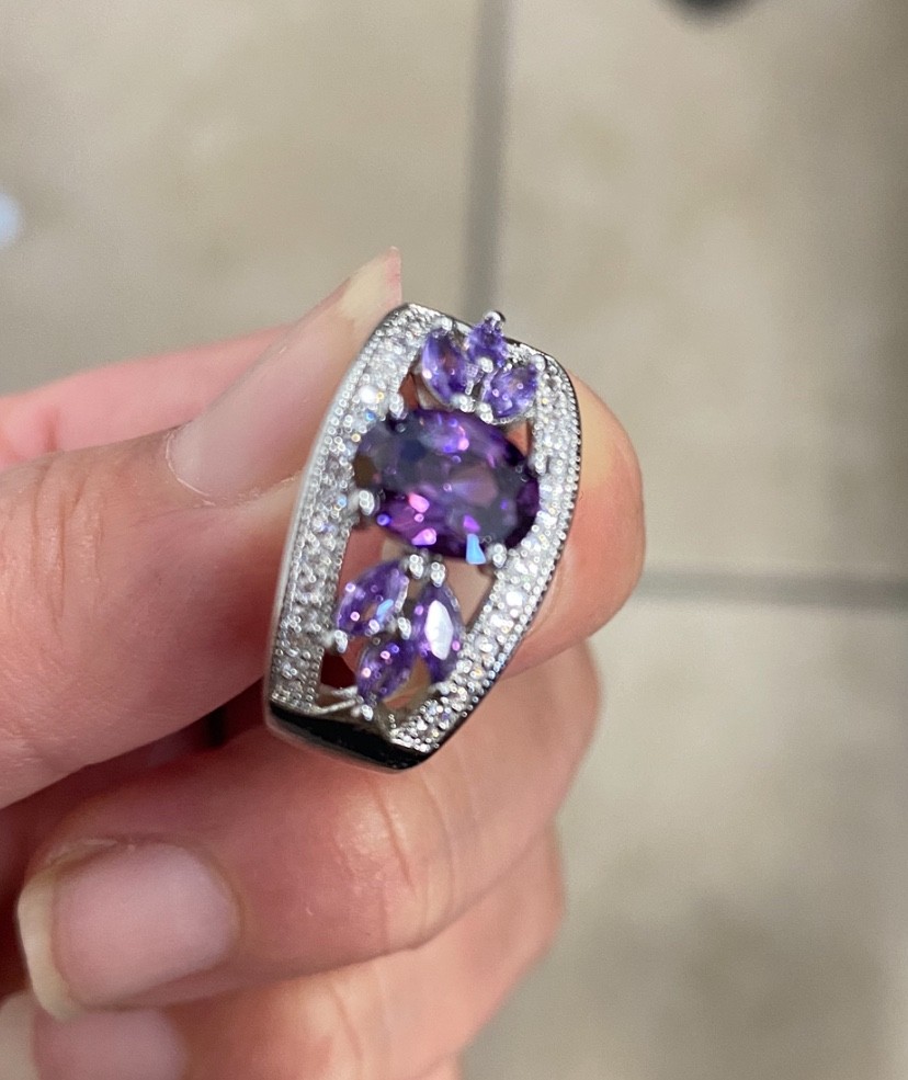 как выглядит Amethyst 925 Sterling Silver Female Ring Flower Shaped Size 7 8 9 Free Ship USA фото