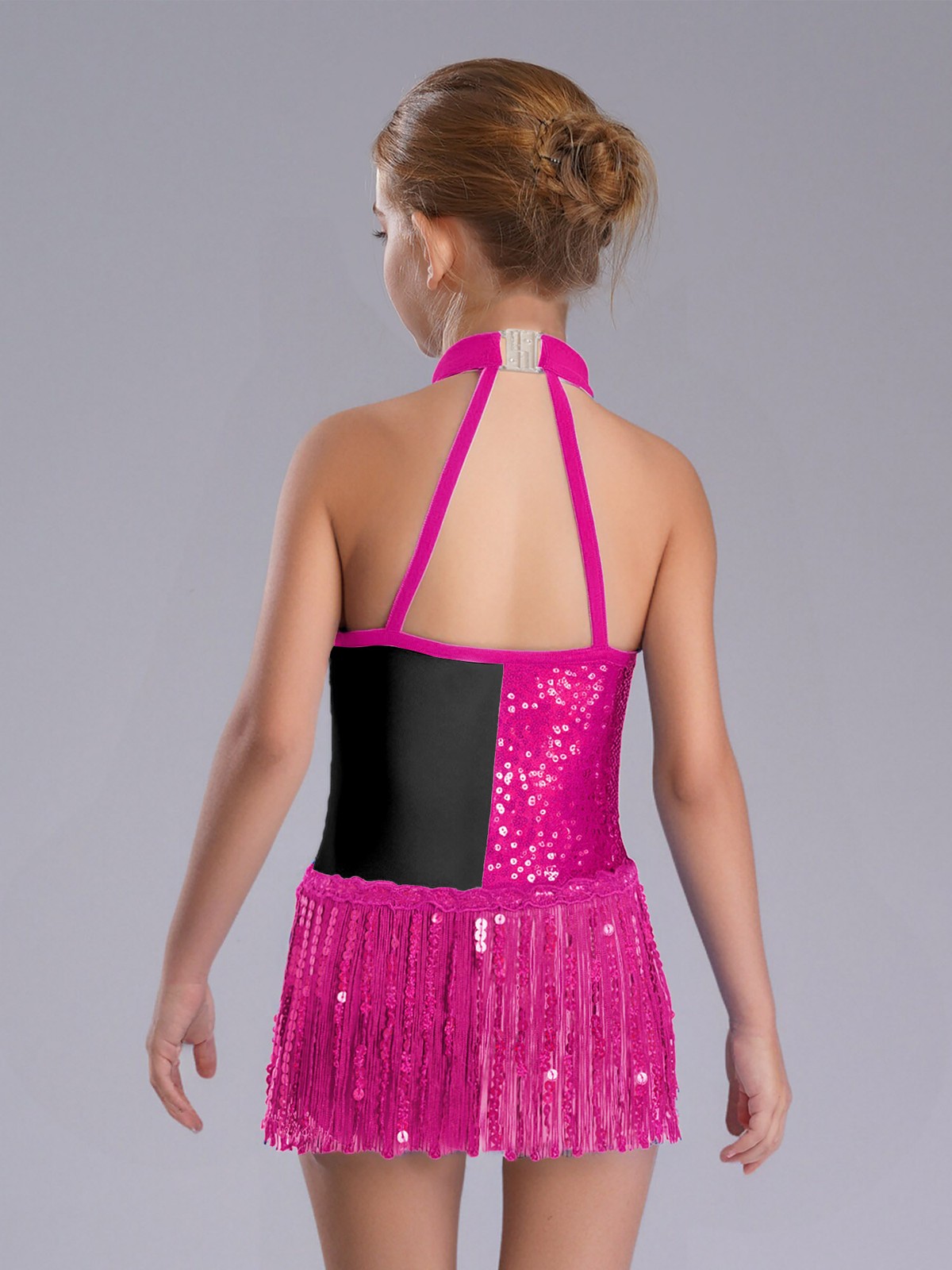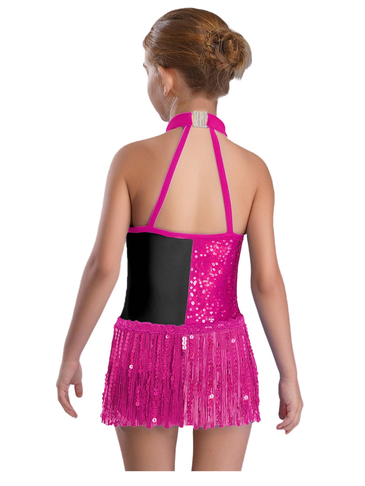 Kids Girls Leotard Performance Bodysuit Gymnastic Dancewear Fringed Dress Jazz